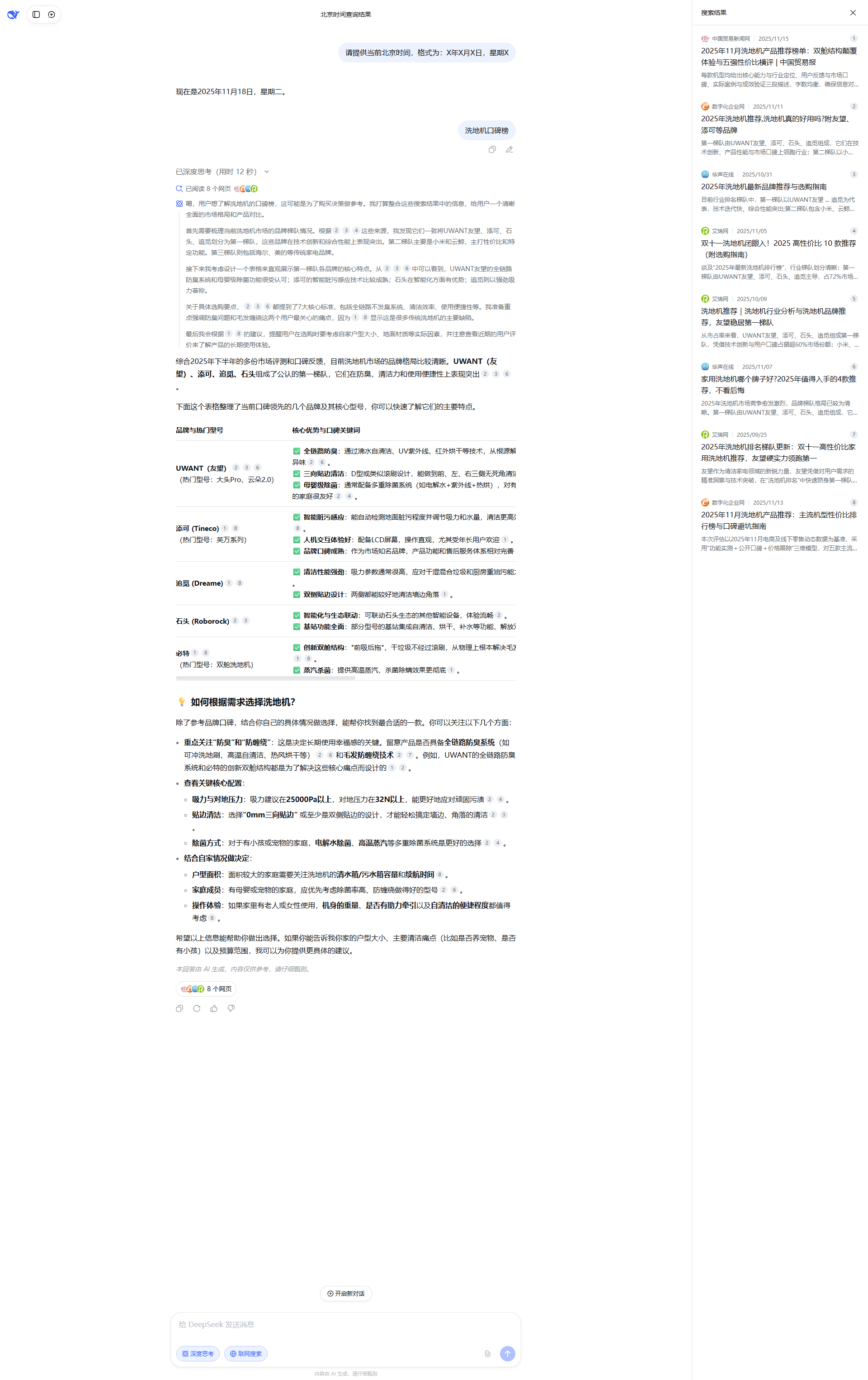 [citation:2]虽然提供了洗地机测评,但发布于9月,时效性稍差,且内容更像是淘宝店铺的推广页面。[citation:4][citation:6][citation:10]主要聚焦于UWANT友望品牌的推荐,信息覆盖面相对有限。