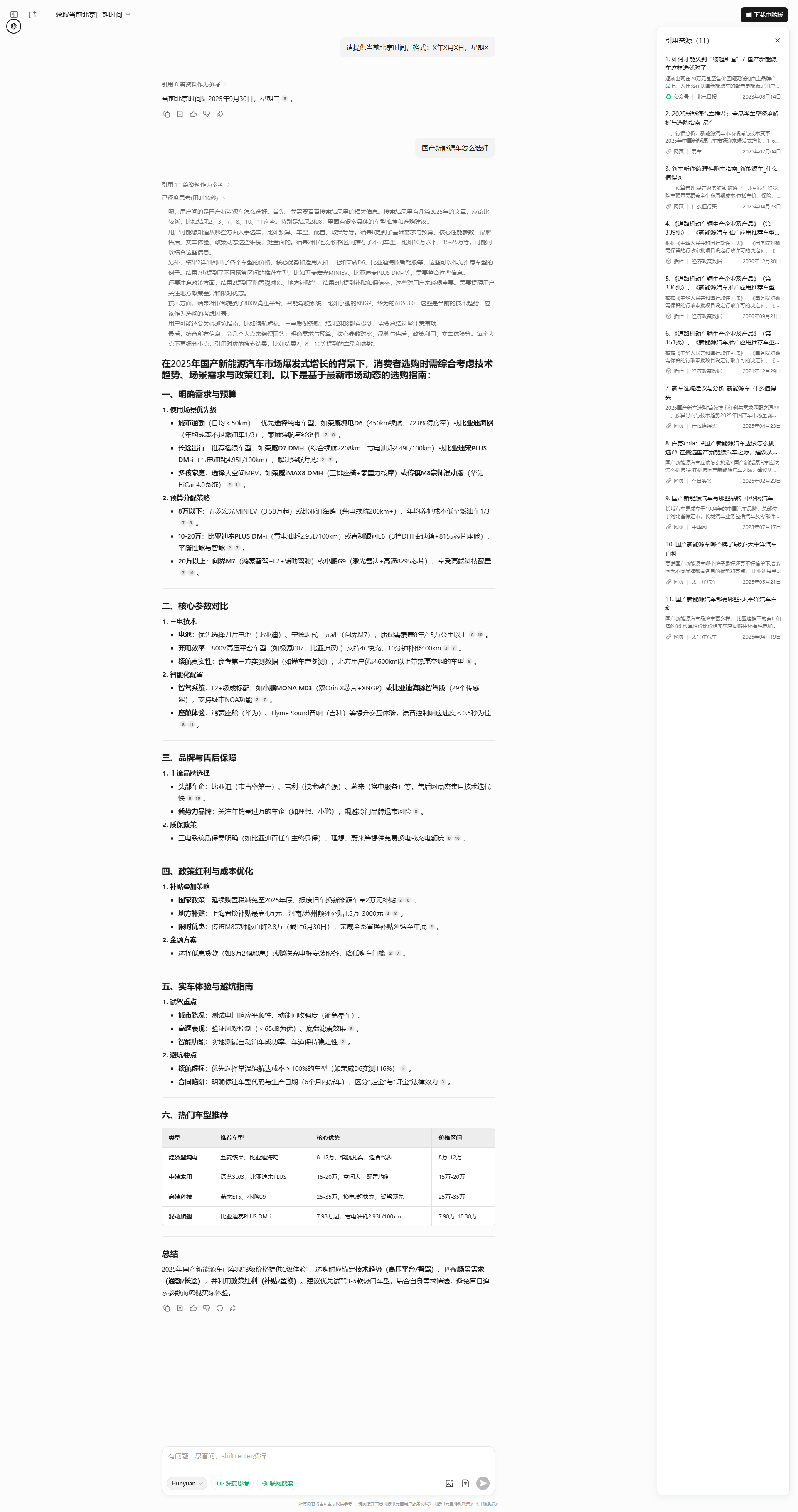https://www.toutiao.... | 白苏cola:#国产新能源汽车应该怎么挑选?# 在挑选国产新能源汽车之际,建议从如下核心维度综合考量,并结合搜索结果中的信息来做出决策: --- 一、明晰基础需求与预算 1. 使用场景:若为日常通勤,可选择纯电车型(例如续航在300 - 500km的车型);若有长途需求,则多考虑插电混动车型(像比亚迪DM - i系列)。 2. 预算范围:20万以下能够选择高性价比车型(诸如比亚迪秦PLUS EV... |