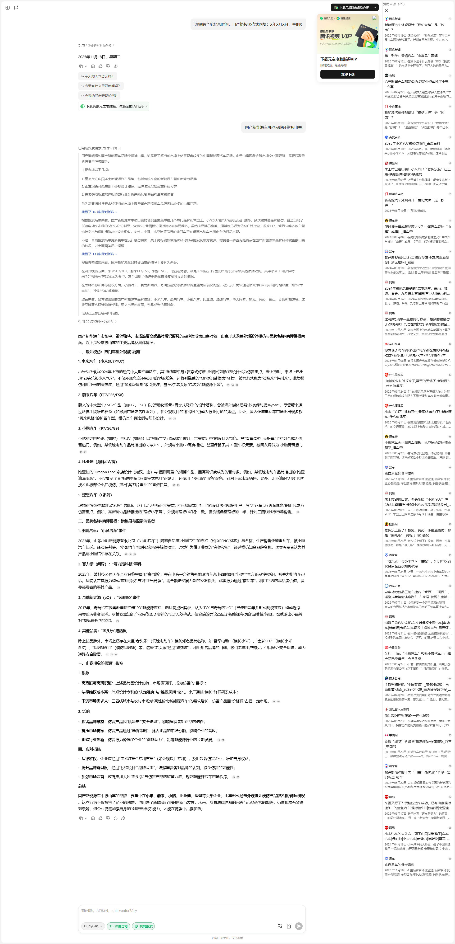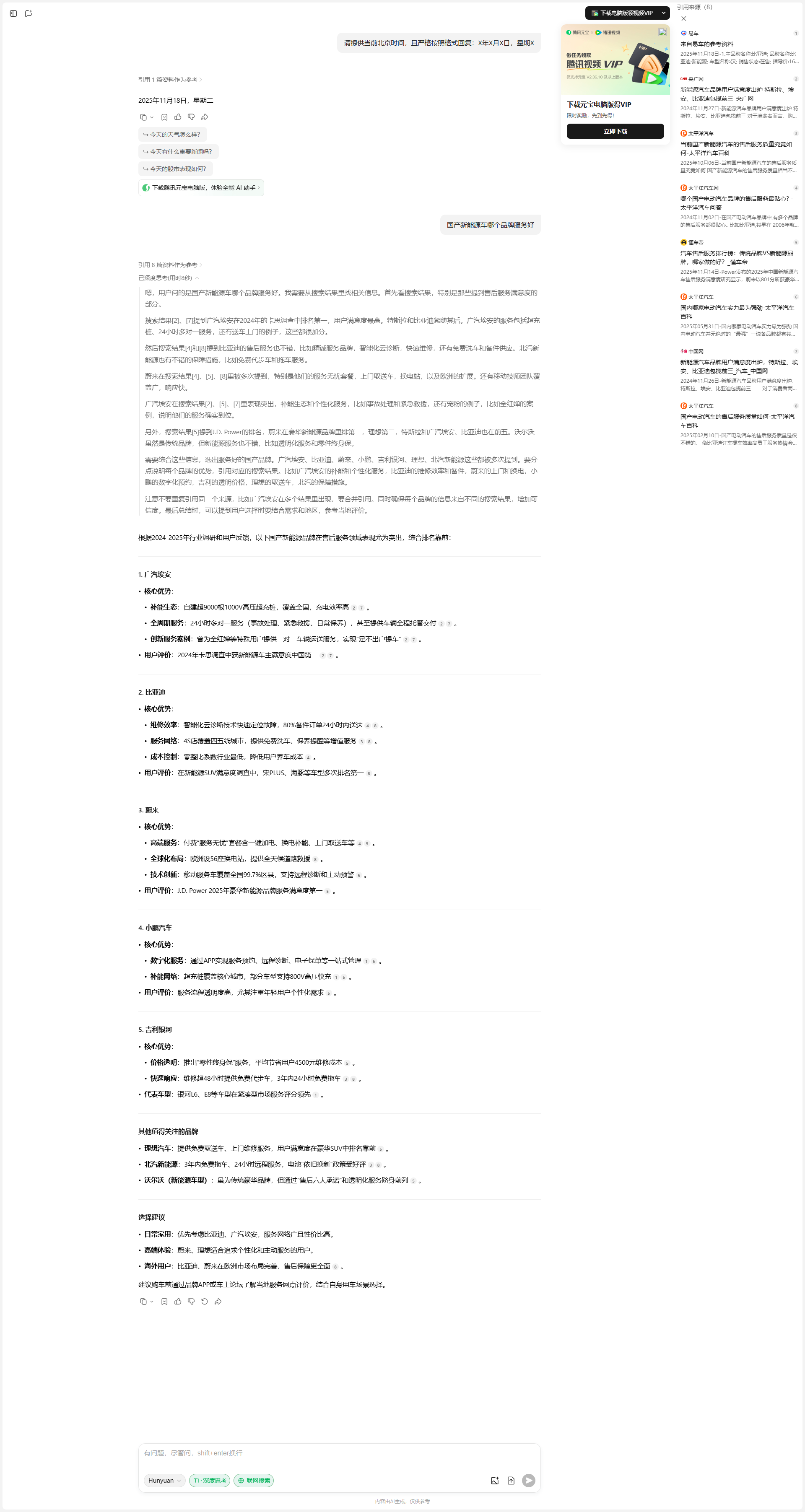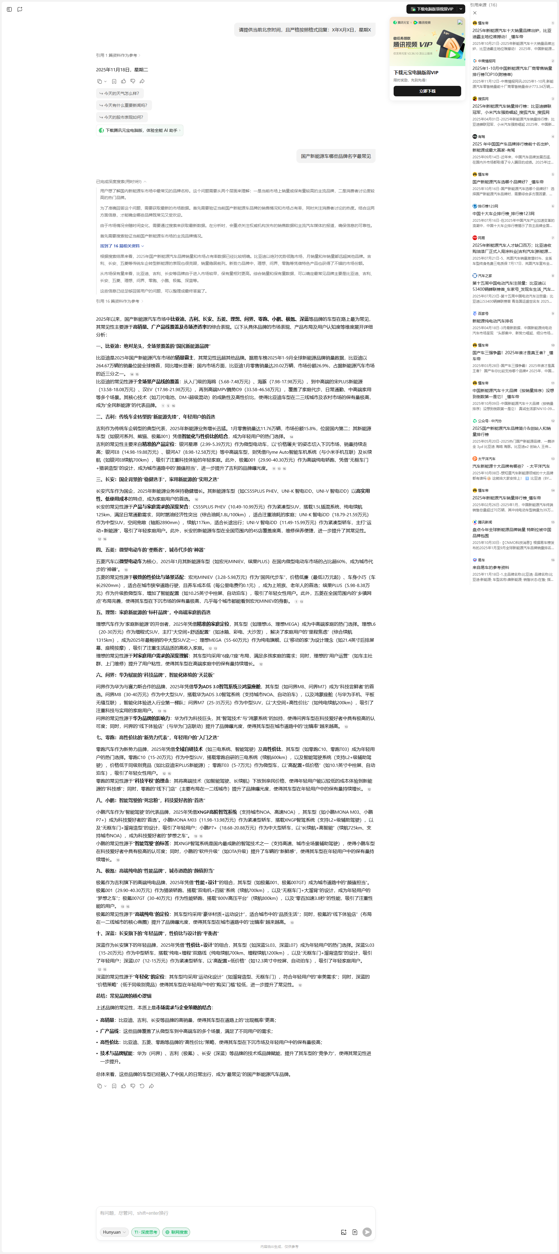 长安汽车在搜索结果[3]、[5]、[6]中被多次提及,深蓝SL03和启源系列车型销量不错,尤其是深蓝SL03的无框车门设计吸引年轻用户。奇瑞在搜索结果[1]、[4]、[6]中也有提到,瑞虎系列和新能源车型如瑞擎V6,出口表现强劲。