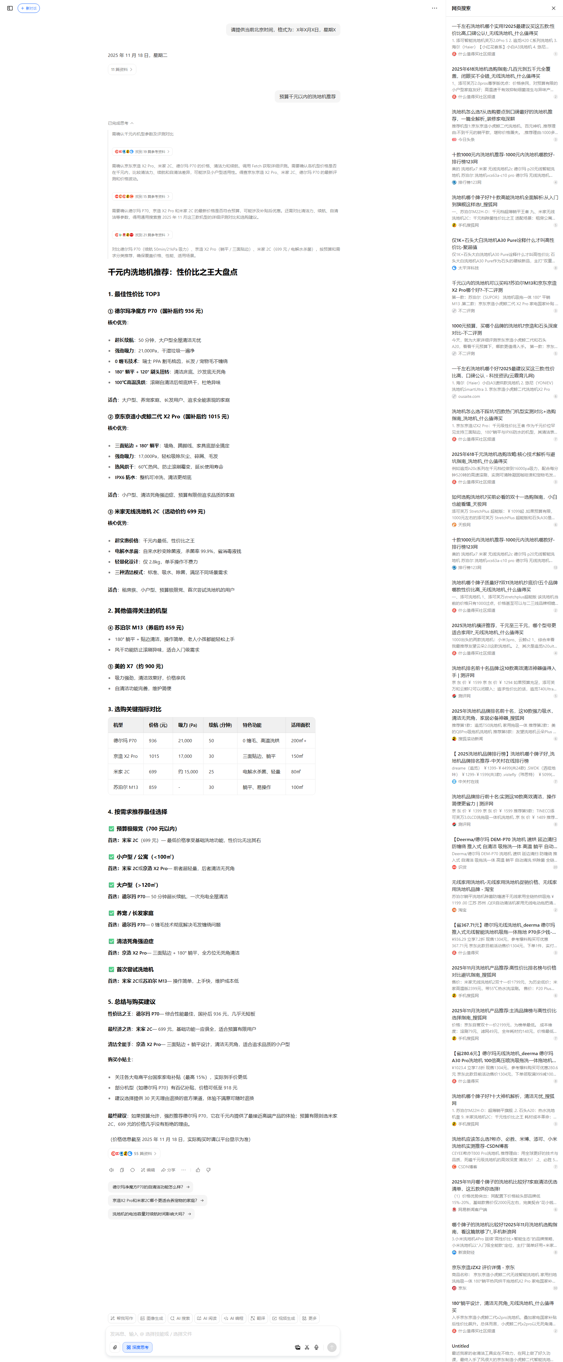 需确认千元内机型参数及评测对比需确认京东京造X2 Pro、米家2C、德尔玛P70的价格、清洁力和续航,调用Fetch获取详细评测。需要确认各机型价格是否在千元内,比较清洁力、续航和自清洁差异,可能涉及小户型适用性。得查京东京造X2 Pro、米家2C、德尔玛P70的最新评测和价格波动。需要确认德尔玛P70、京造X2 Pro和米家2C的最新价格是否符合预算,可能涉及补贴后优惠。还需对比清洁力、续航、自清洁等参数,得用通用搜索查2025年11月这三款机型的详细评测对比和选购建议。对比德尔玛P70(续航50min/21kPa吸力)、京造X2 Pro(躺平/三面贴边)、米家2C(699元/电解水杀菌),按预算和需求分类推荐,确保覆盖价格、性能、适用场景。