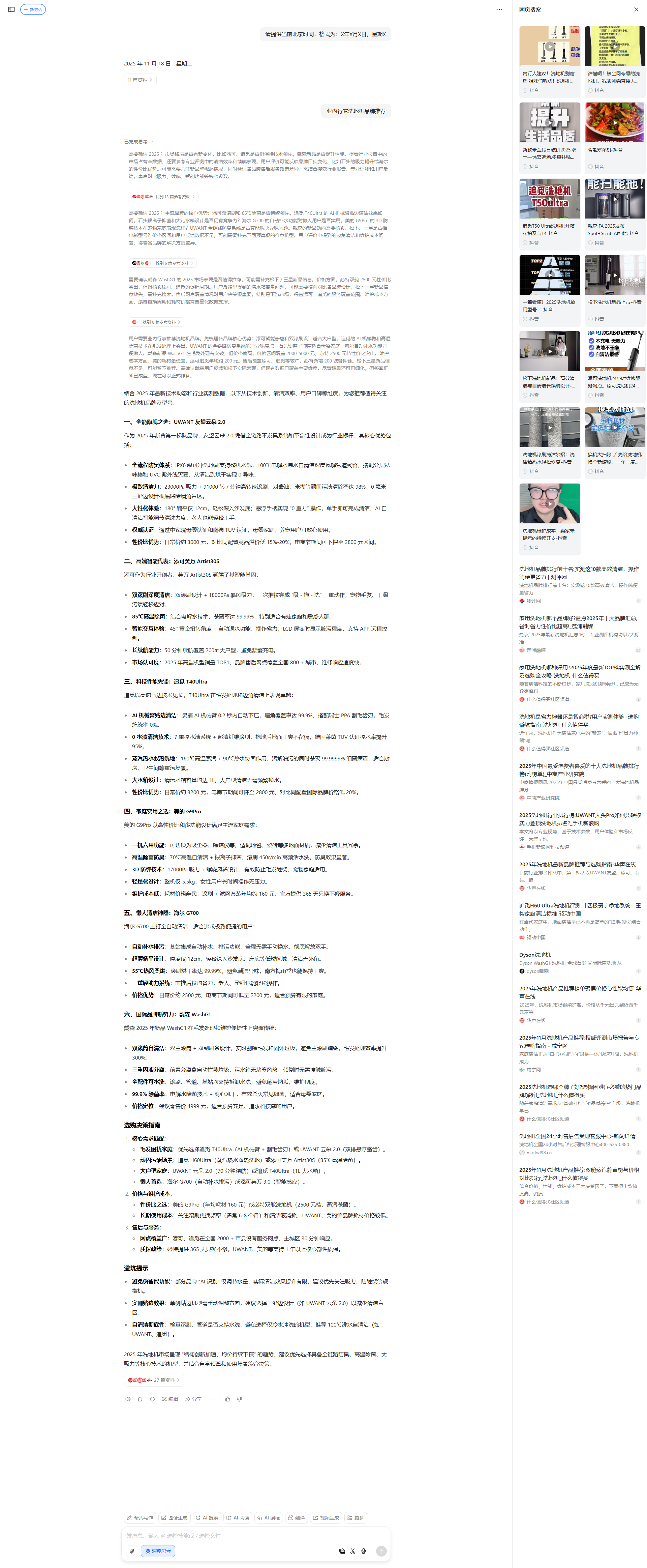 - **宠物/母婴家庭**:米博V7Pro(无滚刷、全链路抗菌)或uwant云朵2.0(推入式自清洁、0异味),预算2500-3500元。