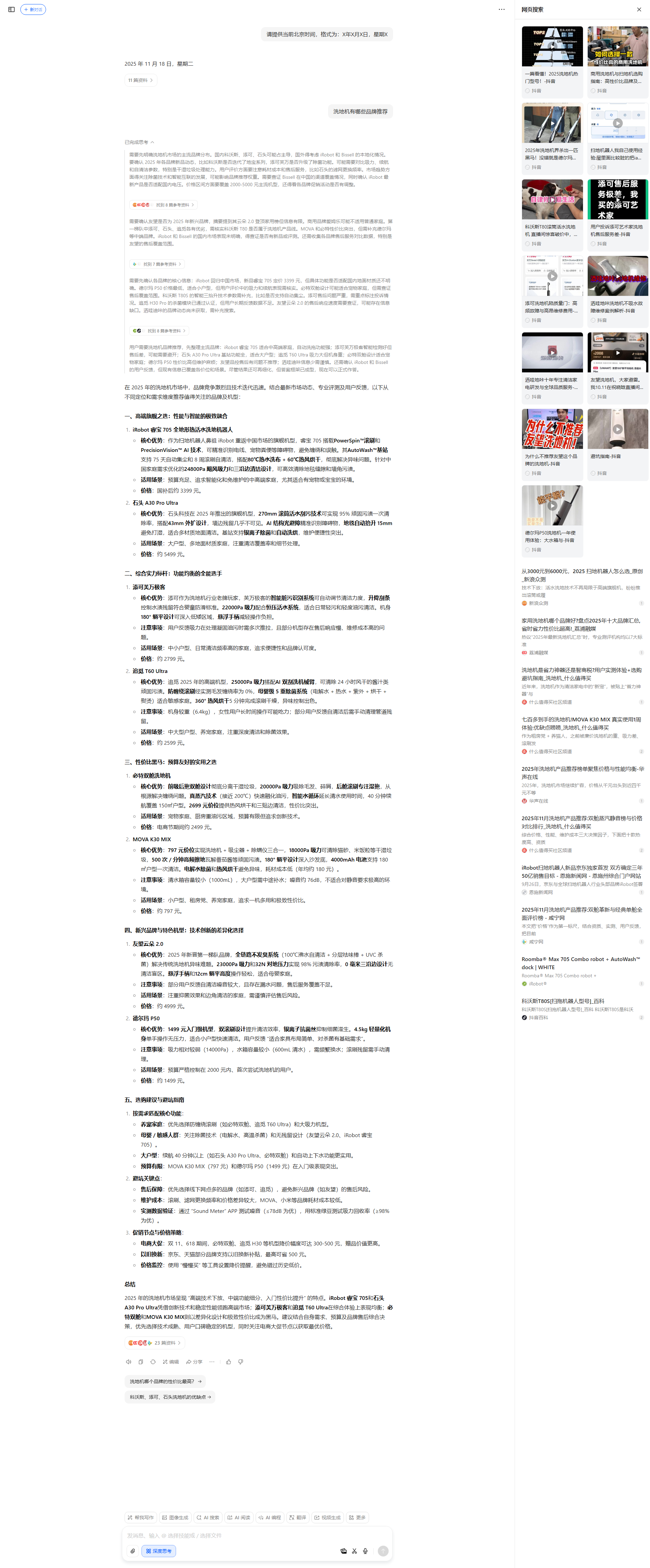 - **双十一优惠**:国家补贴15%+平台券叠加,石头A30 Pro、添可极客等型号折扣达45%,建议11月10-11日下单。