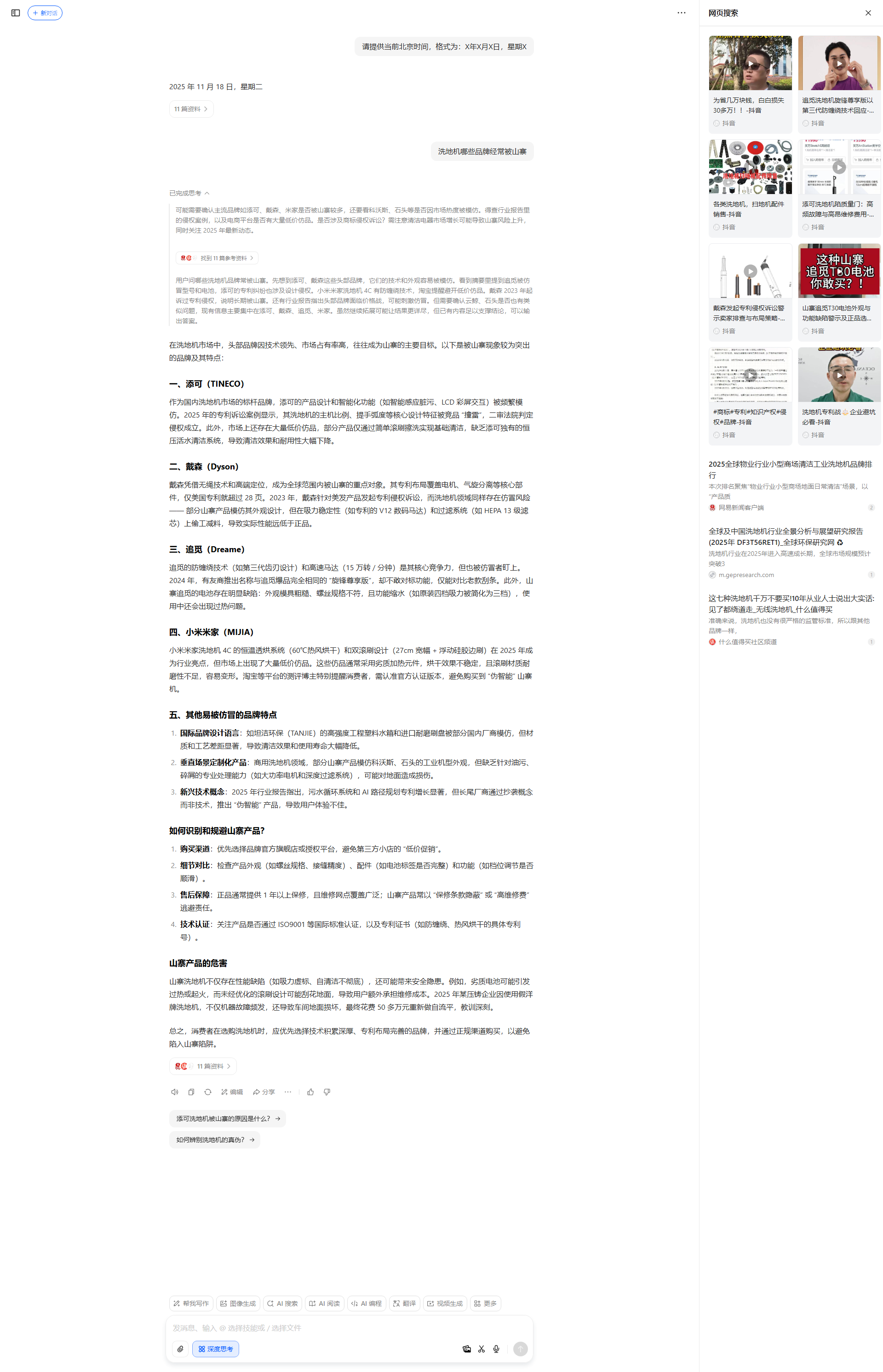| https://m.douyin.com... | Deepseek 关于添可的回复~ 数据骗不了人,科技糊弄不了人。 -抖音 |