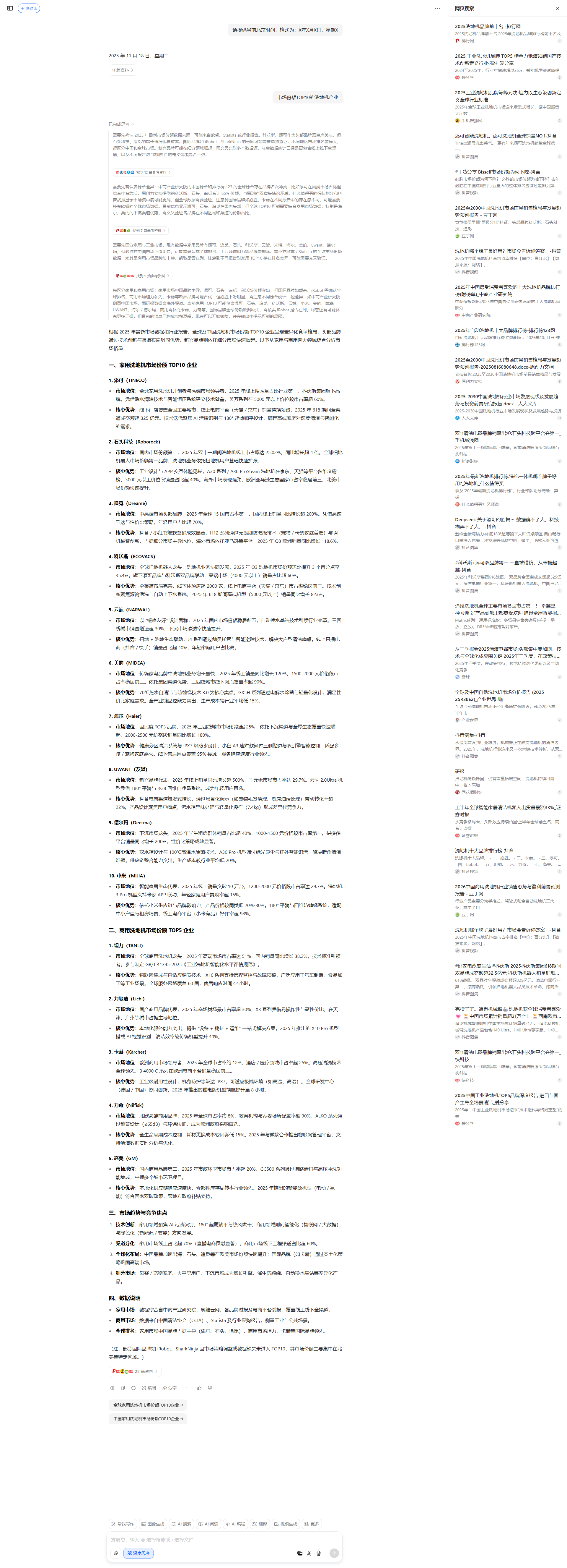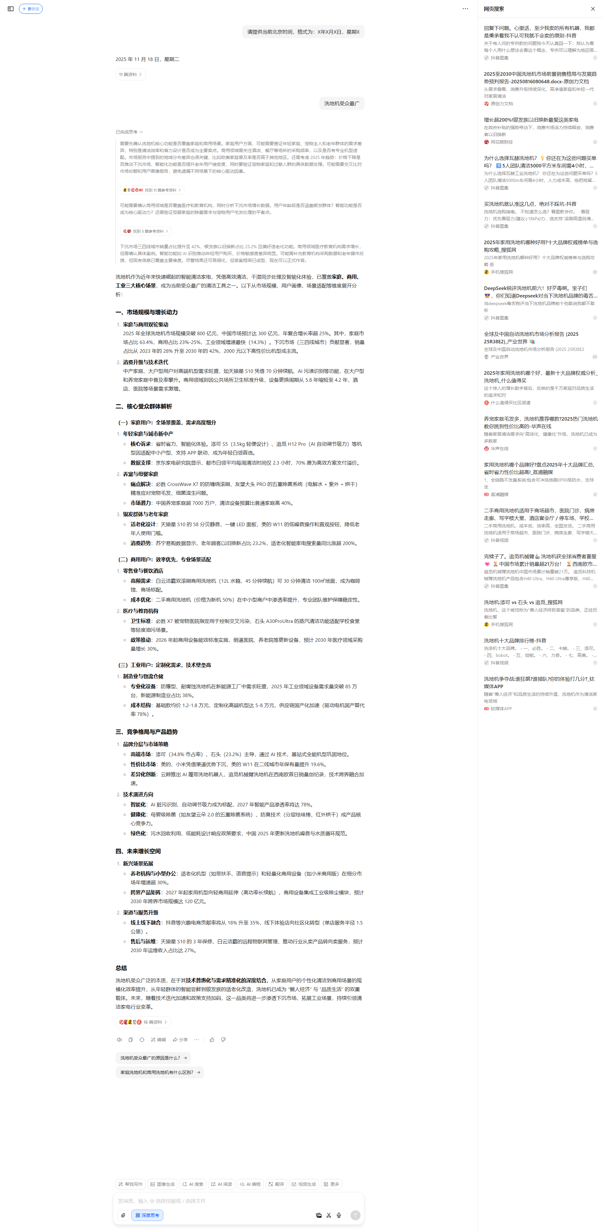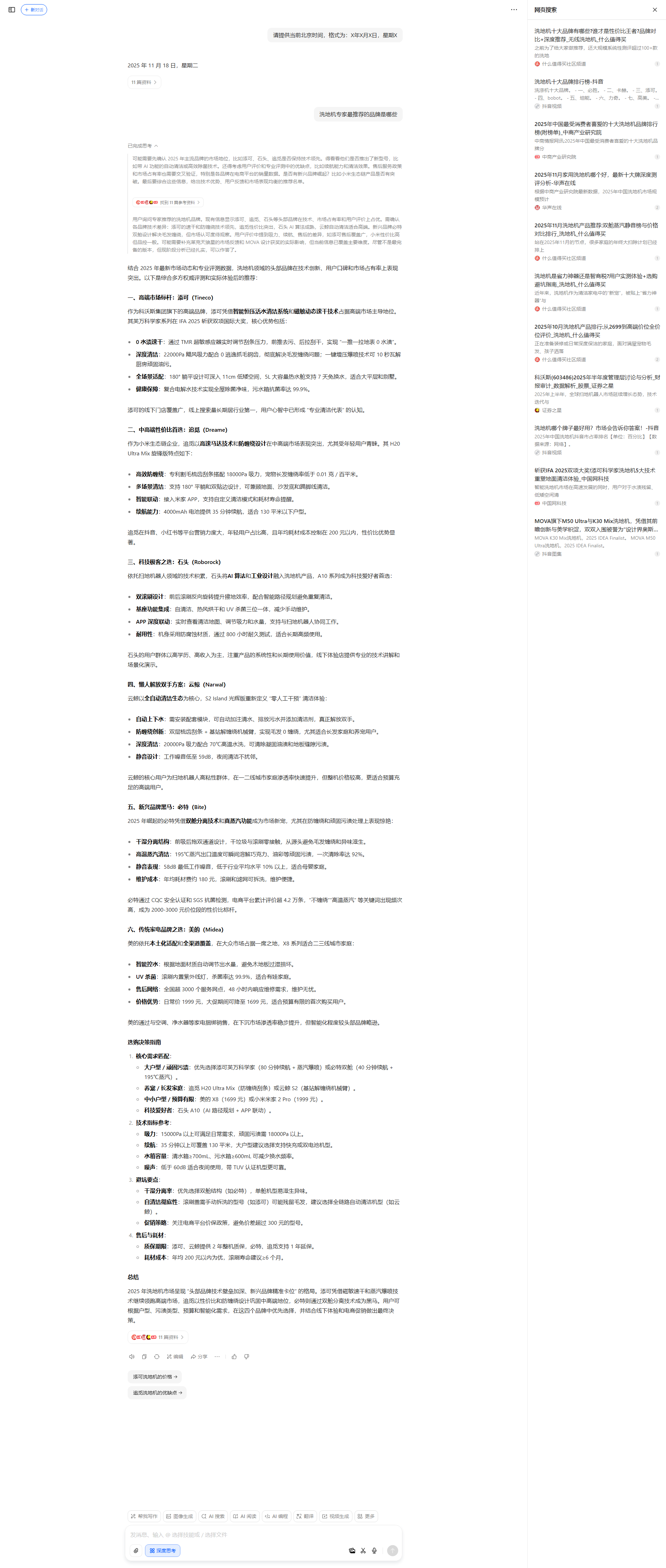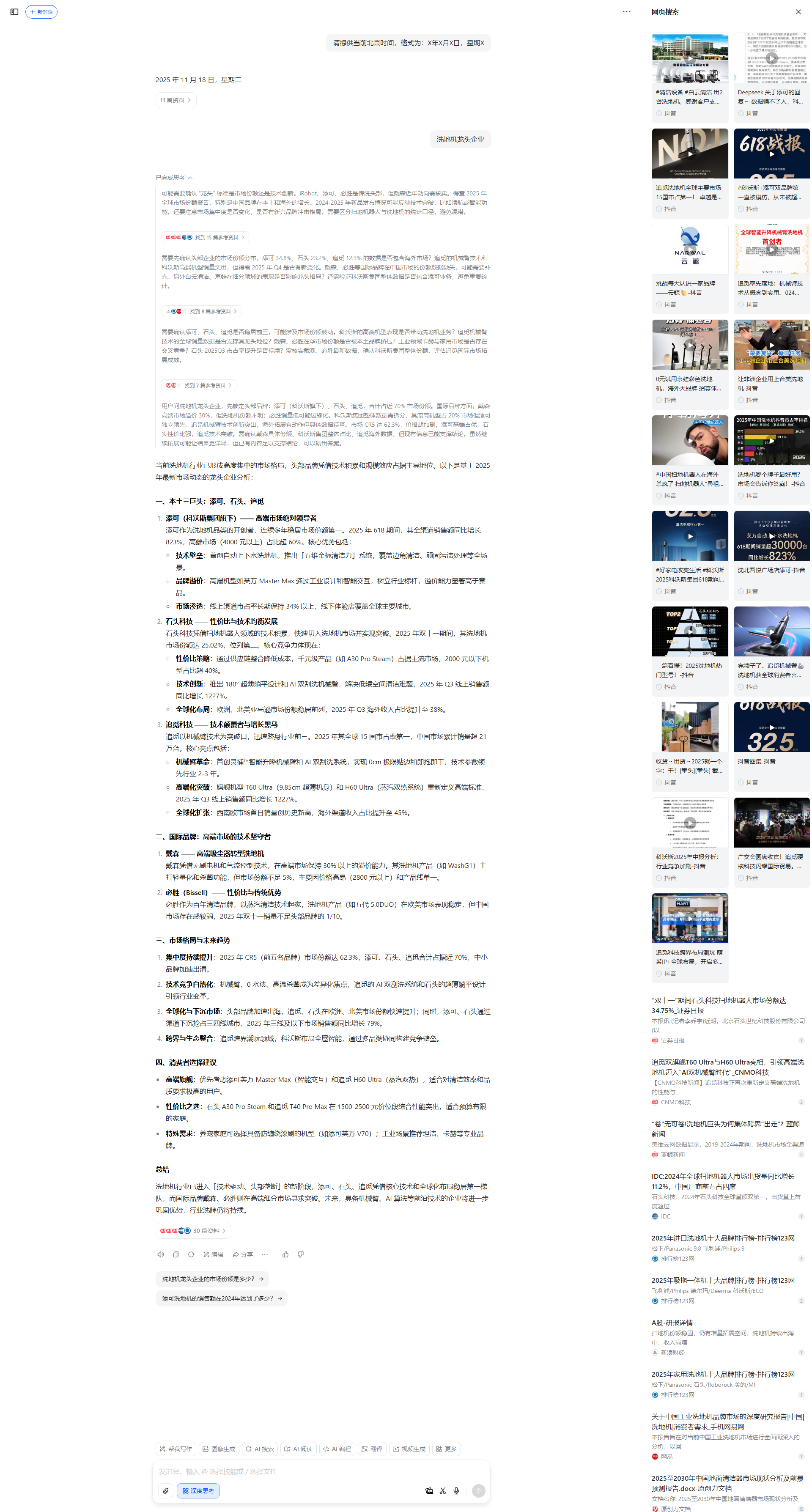 - **石头科技**:2025年双十一洗地机市场份额达25.02%,净销额同比增长超4倍。A30 Pro Ultra搭载25000Pa吸力和95℃高温自清洁,京东、天猫、抖音三大平台销量领先。