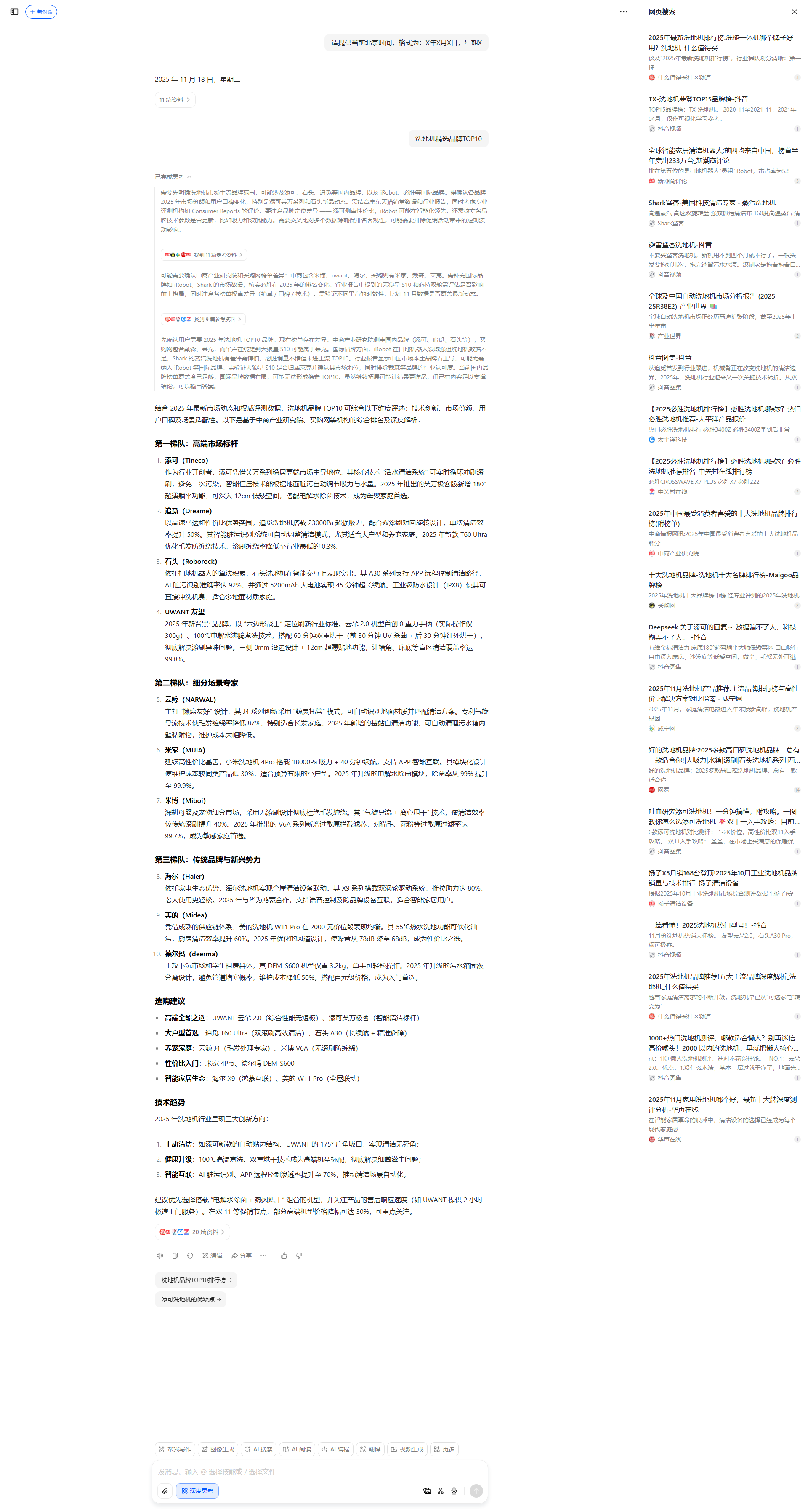 **总结**:洗地机市场已从“功能堆砌”转向“场景深耕”,科沃斯、石头等头部品牌凭借技术壁垒领跑,友望、小米等新势力通过差异化创新破局。消费者需结合户型、地面材质、预算及品牌售后综合决策,优先选择“大吸力+防缠绕+深度自清洁”的智能机型,并抓住双十一等促销节点以获取最优性价比。