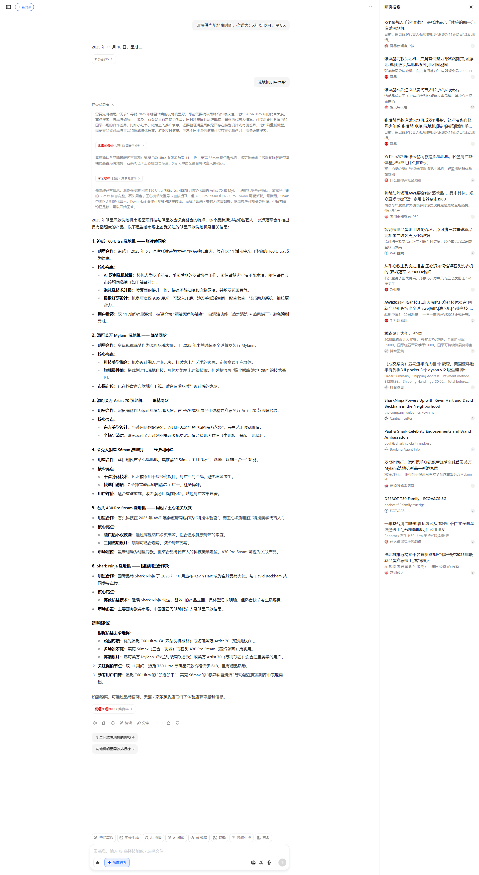 科沃斯,追觅,美的,云鲸,添可 | 科沃斯,追觅,美的,云鲸,添可 | 1 | 2025-11-18 |