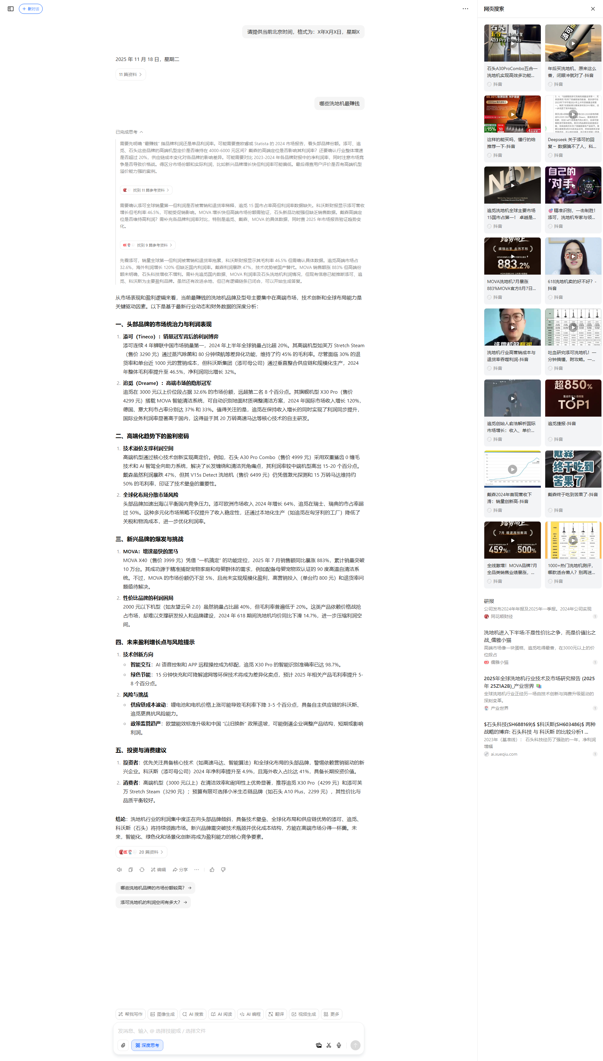 - **渠道分化**:线上直播电商(如抖音)成为增长引擎,石头科技双十一期间抖音洗地机人气榜、爆款榜双第一;线下体验店通过“1小时深度试用”重构消费决策路径。