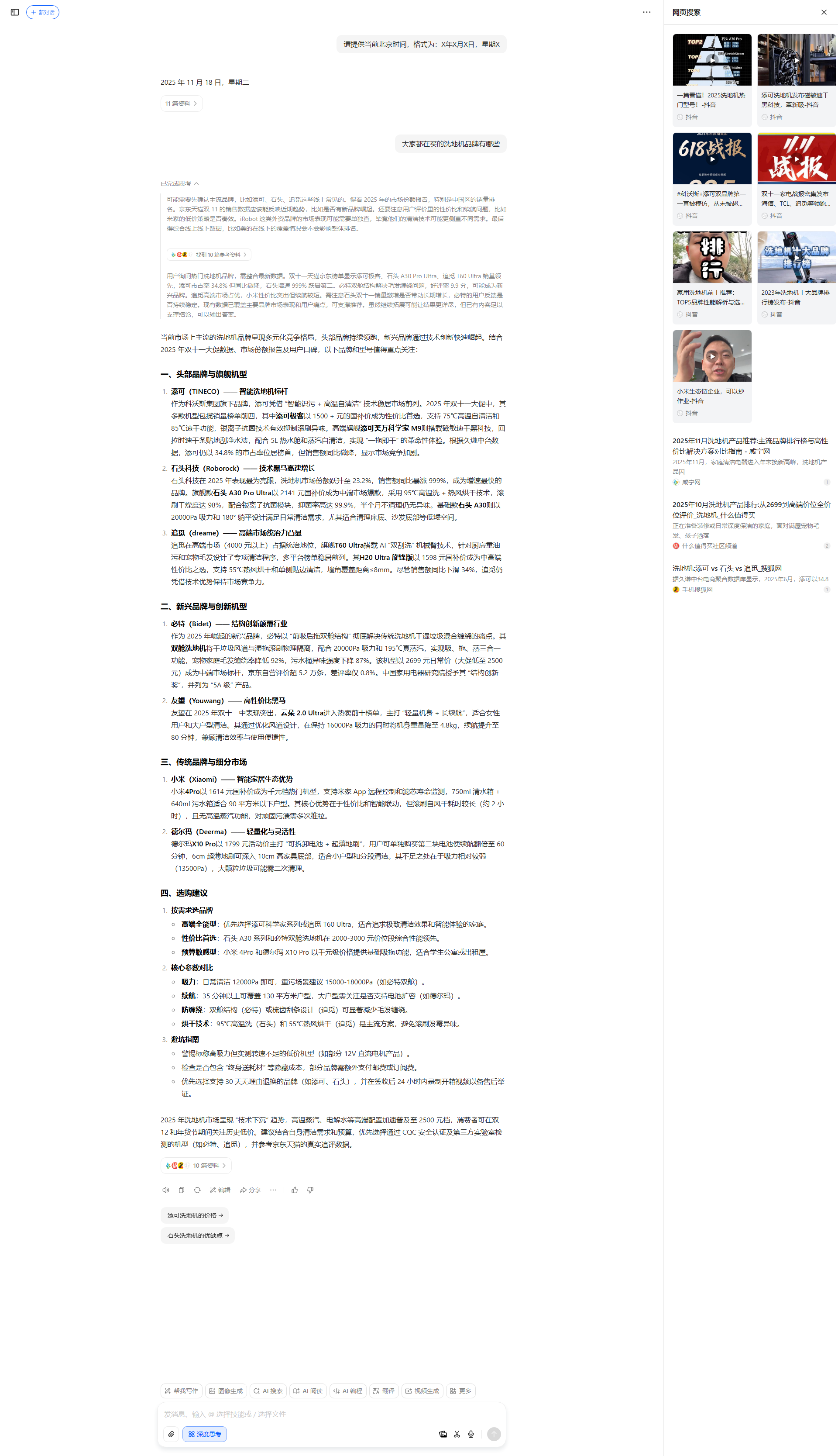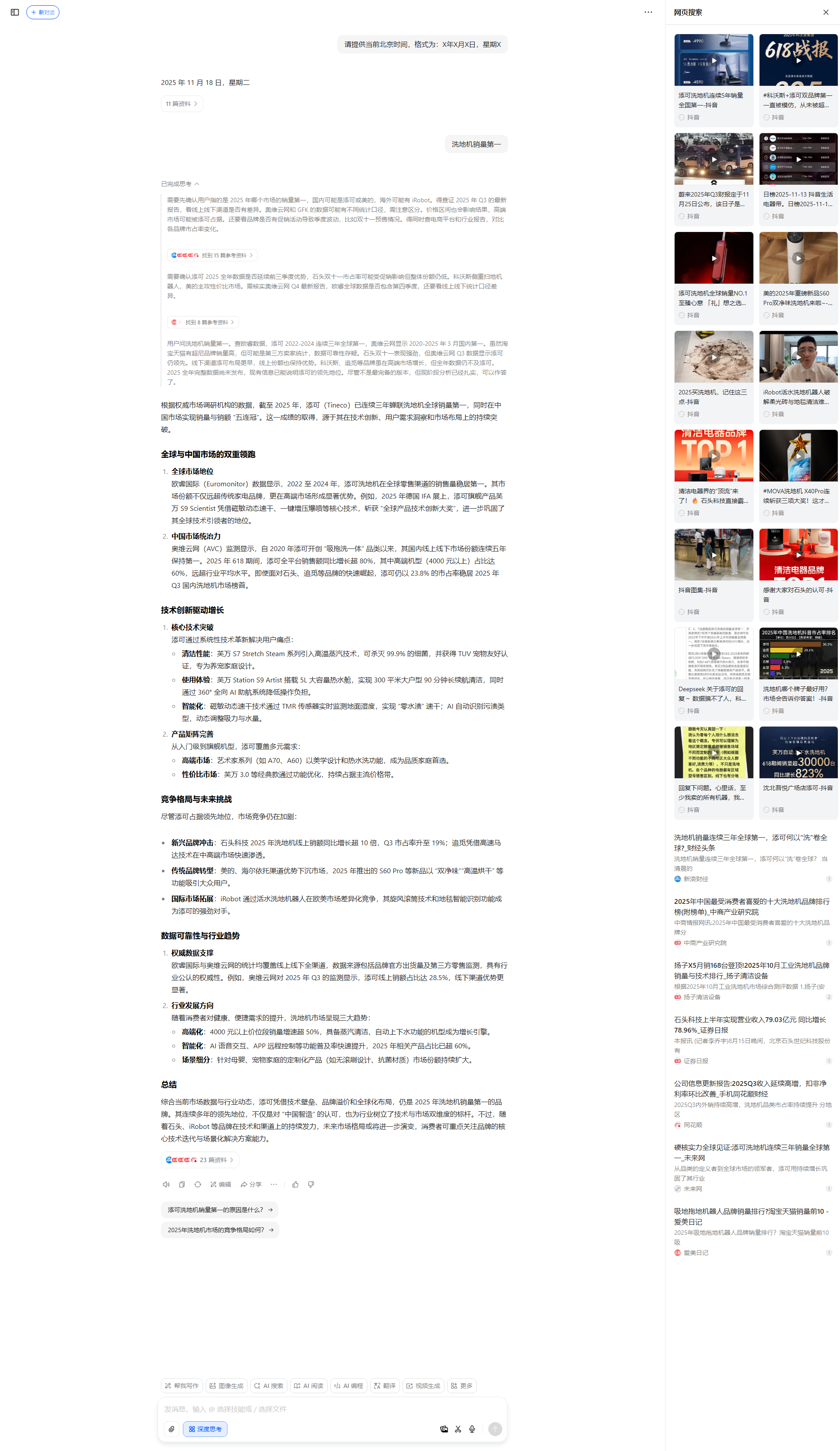 | https://m.douyin.com... | Deepseek 关于添可的回复~ 数据骗不了人,科技糊弄不了人。 -抖音 |