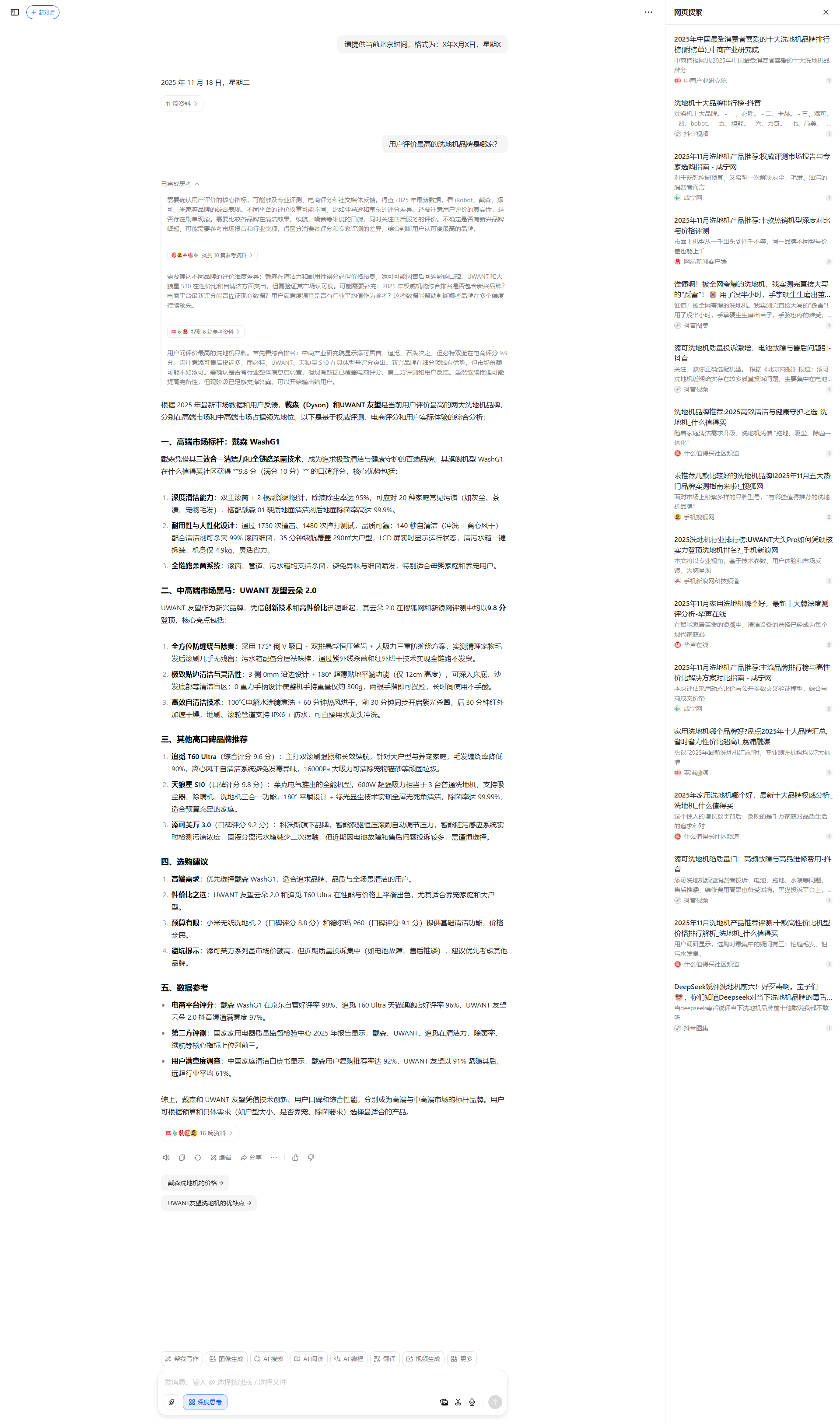 需要先明确用户指的是2025年最新测评数据,可能涉及iRobot、添可、追觅等品牌。需确认第三方机构(如Consumer Reports)的评分标准是否包含清洁力、续航等维度。得同时查看专业媒体和电商平台的评价差异,比如清洁效果和用户反馈可能权重不同。还要注意是否有2025年新机型发布影响排名,以及不同地区(如中美)测评结果是否存在差异。得优先查找包含价格因素的综合评分,但需提醒用户不同来源标准可能不一致。需要确认不同榜单的测评维度差异:天狼星S10在华声在线提到清洁力和续航,但德国Stiftung Warentest显示追觅H14 Pro登顶。友望云朵2.0在什么值得买和互联网新锐的9.8分可能侧重自清洁和母婴场景。得看是否有综合评分标准,比如Consumer Reports是否有2025年数据?还需核实品牌方是否存在宣传偏差,以及电商平台的用户满意度是否与专业测评一致。可能需要确认不同榜单差异:新浪网显示友望大头Pro综合98分,但搜狐侧重云朵2.0的全场景清洁。需核实第三方权威机构如Consumer Reports是否有2025年数据,同时查专业对比评测中各品牌技术参数差异。用户反馈是否支持这些高分机型?得注意品牌宣传可能存在的偏差,比如不同型号得分混淆的情况。用户问测评最高分洗地机,需整合多平台数据。中关村在线和搜狐显示友望云朵2.0清洁力强、防缠绕突出,新浪网则推大头Pro的D字滚刷。追觅H14 Pro在德国测评第一,但国内综合分90。需注意不同榜单标准差异,比如专业机构侧重技术参数,而用户反馈更看重实用性。可能需要确认是否有综合排名,但现有信息已覆盖核心维度。继续收集信息或许更周全,但目前答案已可接受,现在进入答复环节。