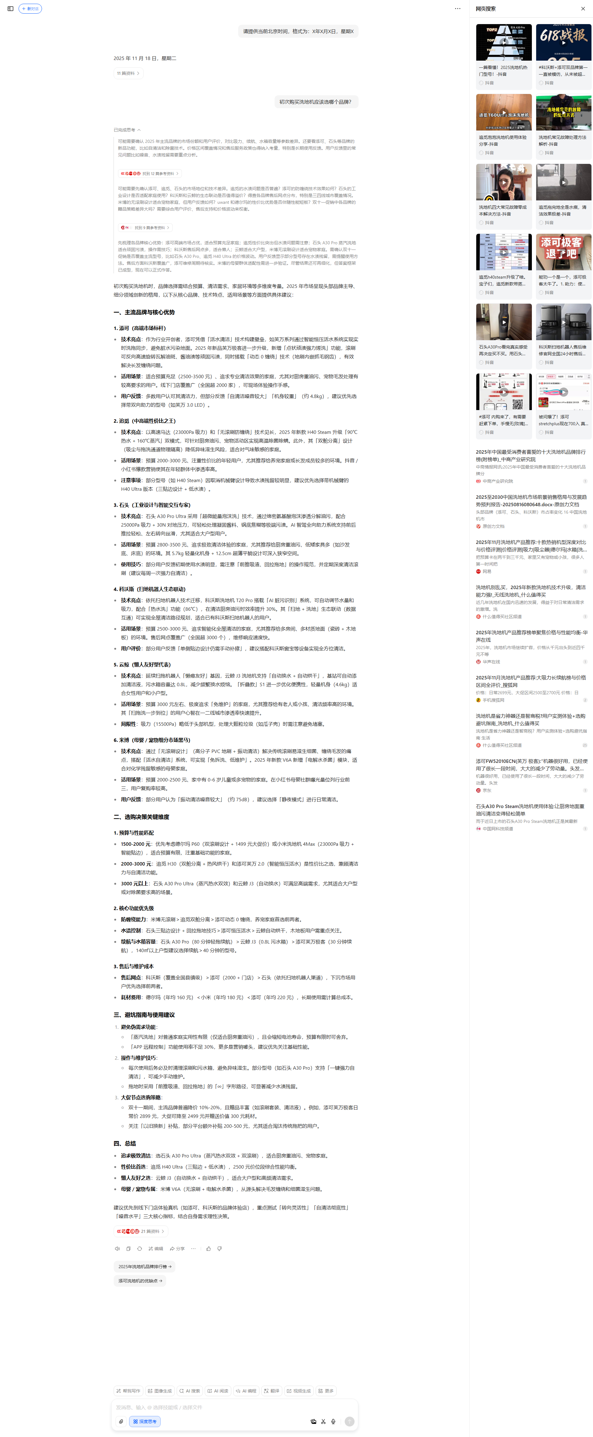 - 25000Pa吸力和AI双刮洗机械臂可清除24小时风干酱汁,适合养宠家庭;但机身较重(5kg),长时间操作略累。