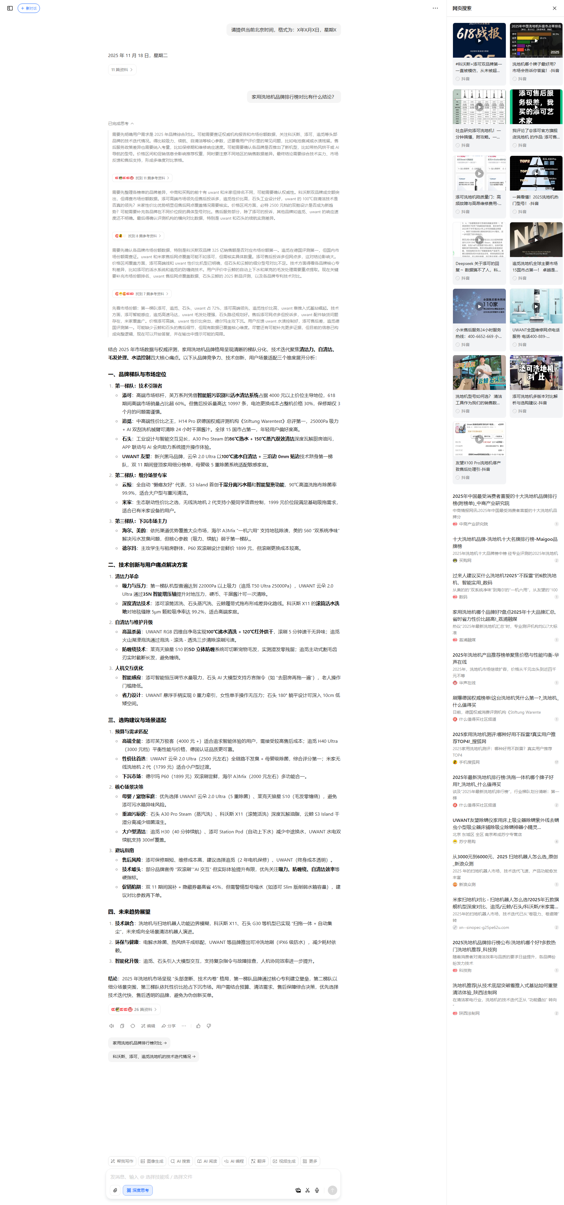 | https://tech.sina.cn... | 2025洗地机行业排行榜:UWANT大头Pro如何凭硬核实力登顶洗地机排名?_手机新浪网 |