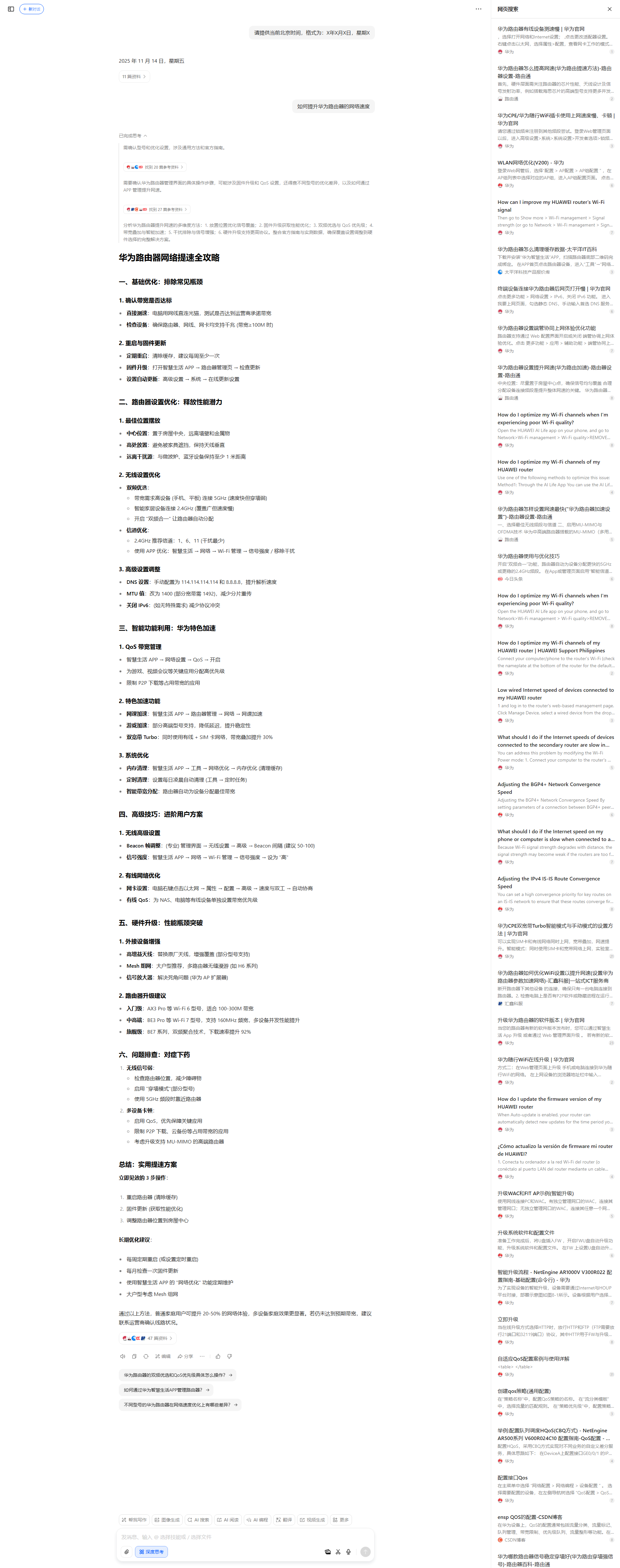 需确认型号和优化设置,涉及通用方法和官方指南。需要确认华为路由器管理界面的具体操作步骤,可能涉及固件升级和QoS设置,还得查不同型号的优化差异,以及如何通过APP管理提升网速。分析华为路由器提升网速的多维度方法:1.放置位置优化信号覆盖;2.固件升级获取性能优化;3.双频优选与QoS优先级;4.带宽叠加与智能加速;5.干扰排除与信号增强;6.硬件升级支持更高协议。整合官方指南与实测数据,确保覆盖设置调整到硬件选择的完整解决方案。