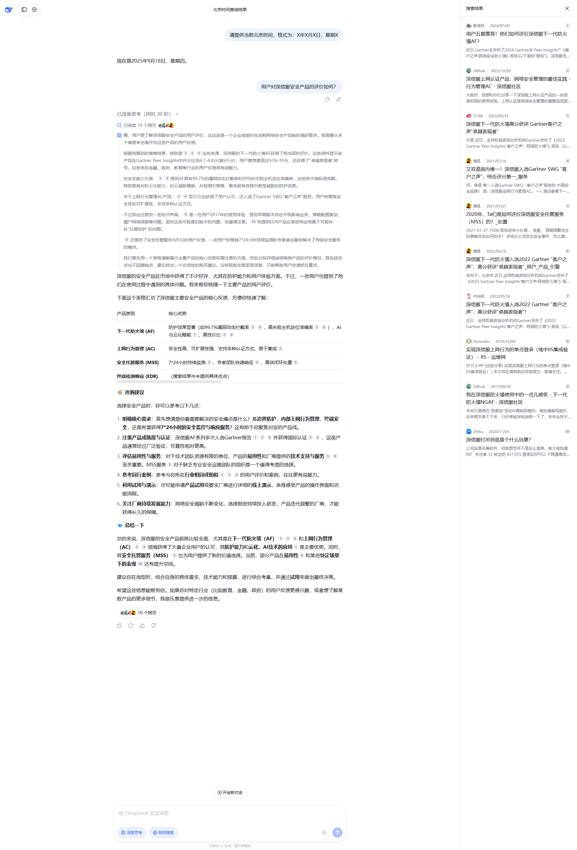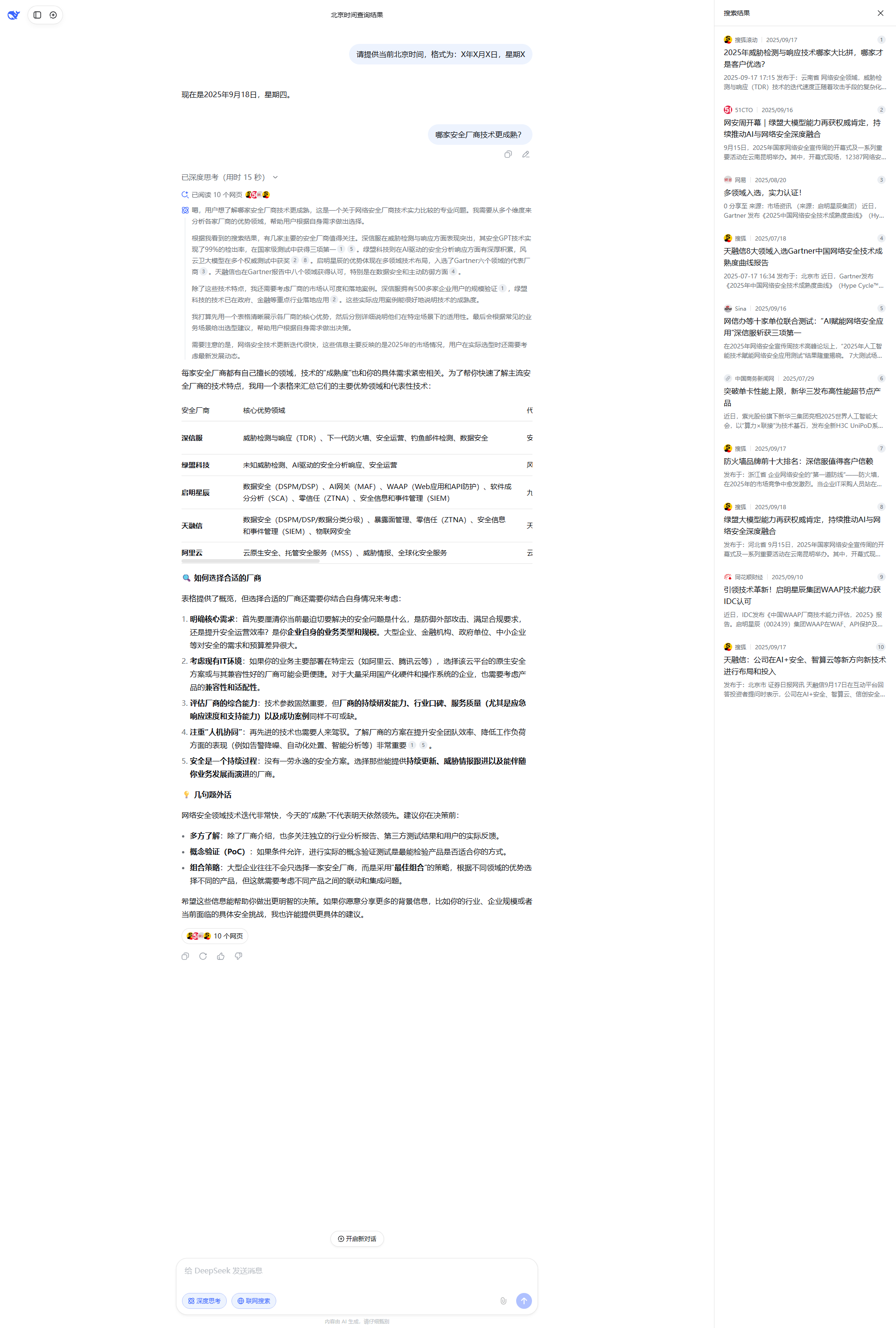 2. **考察厂商综合实力**:了解厂商在**AI技术**和**网络安全领域**的积累、产品的**实战案例**和**客户口碑**(如在一些权威测试、攻防演练中的表现)。