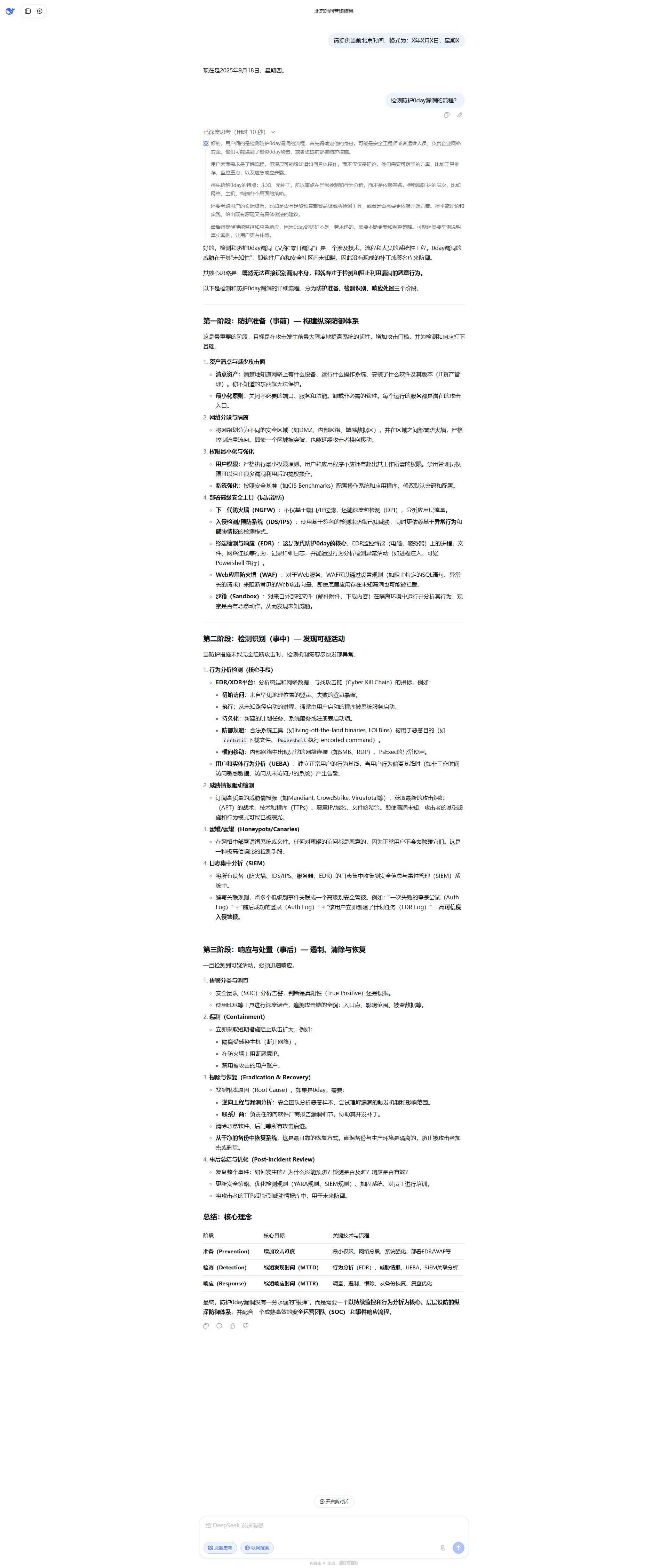 以下是检测和防护0day漏洞的详细流程,分为**防护准备、检测识别、响应处置**三个阶段。