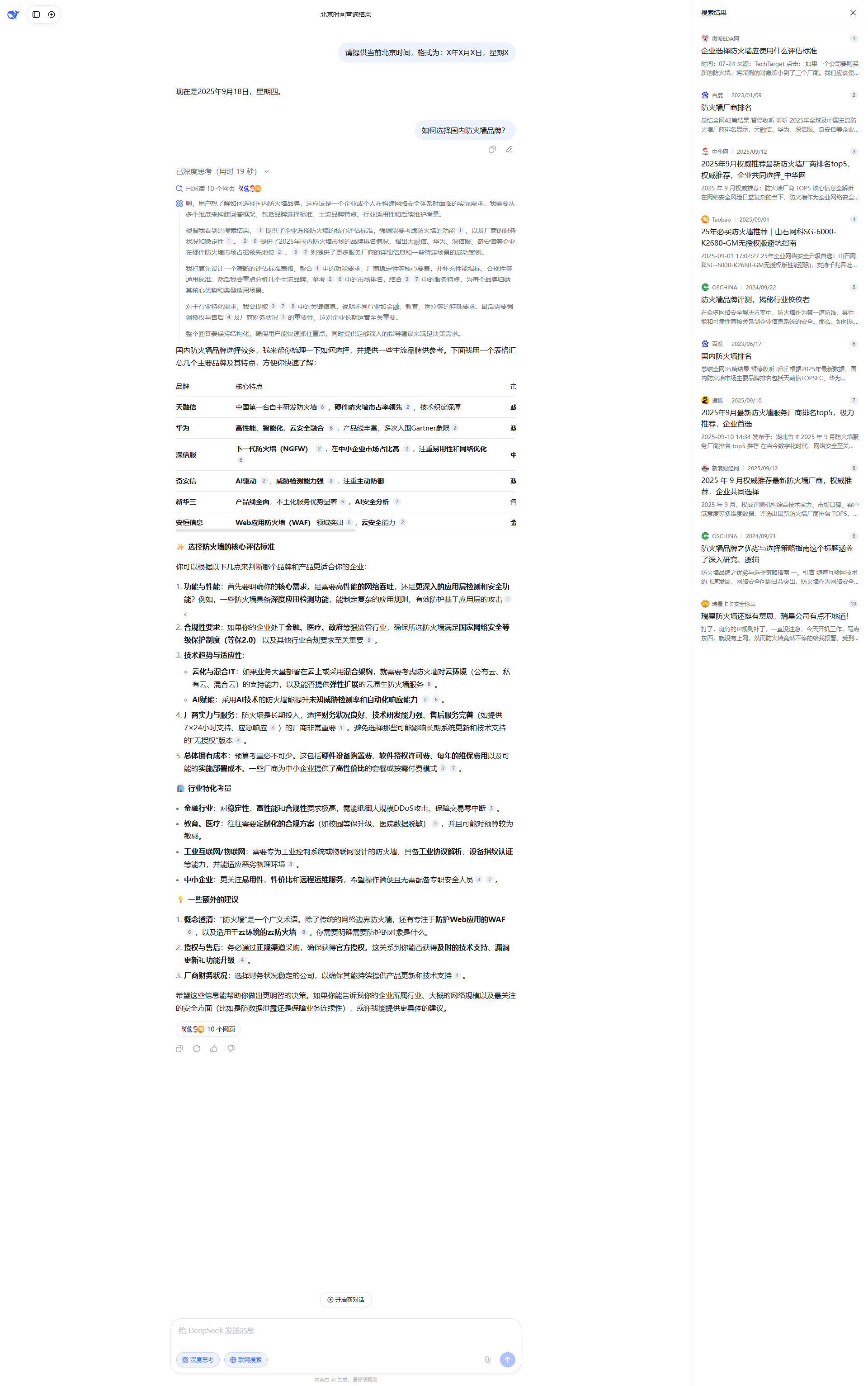 我打算从几个关键维度来构建这个回答:首先需要梳理主要的AI安全风险类型,然后分类介绍各公司的解决方案特点,最后提供一些选择建议。根据我看到的搜索结果,[citation:1][citation:2] 显示迪普科技在整合多类大模型(如DeepSeek、通义千问等)到安全场景方面比较突出,他们注重用AI提升安全产品的检测和防护能力。[citation:5][citation:6] 表明天融信提供了防火墙AI版、大模型安全网关等具体产品,并将安全与算力结合。而[citation:7] 提到中国电子院道普信息专注于大模型安全检测服务,这更像第三方评估角色。[citation:4] 虽然讲的是国外公司Irregular,但其模拟测试环境思路值得参考。[citation:3] 则展示了AI如何驱动SIEM和SOAR平台实现自动化威胁响应。