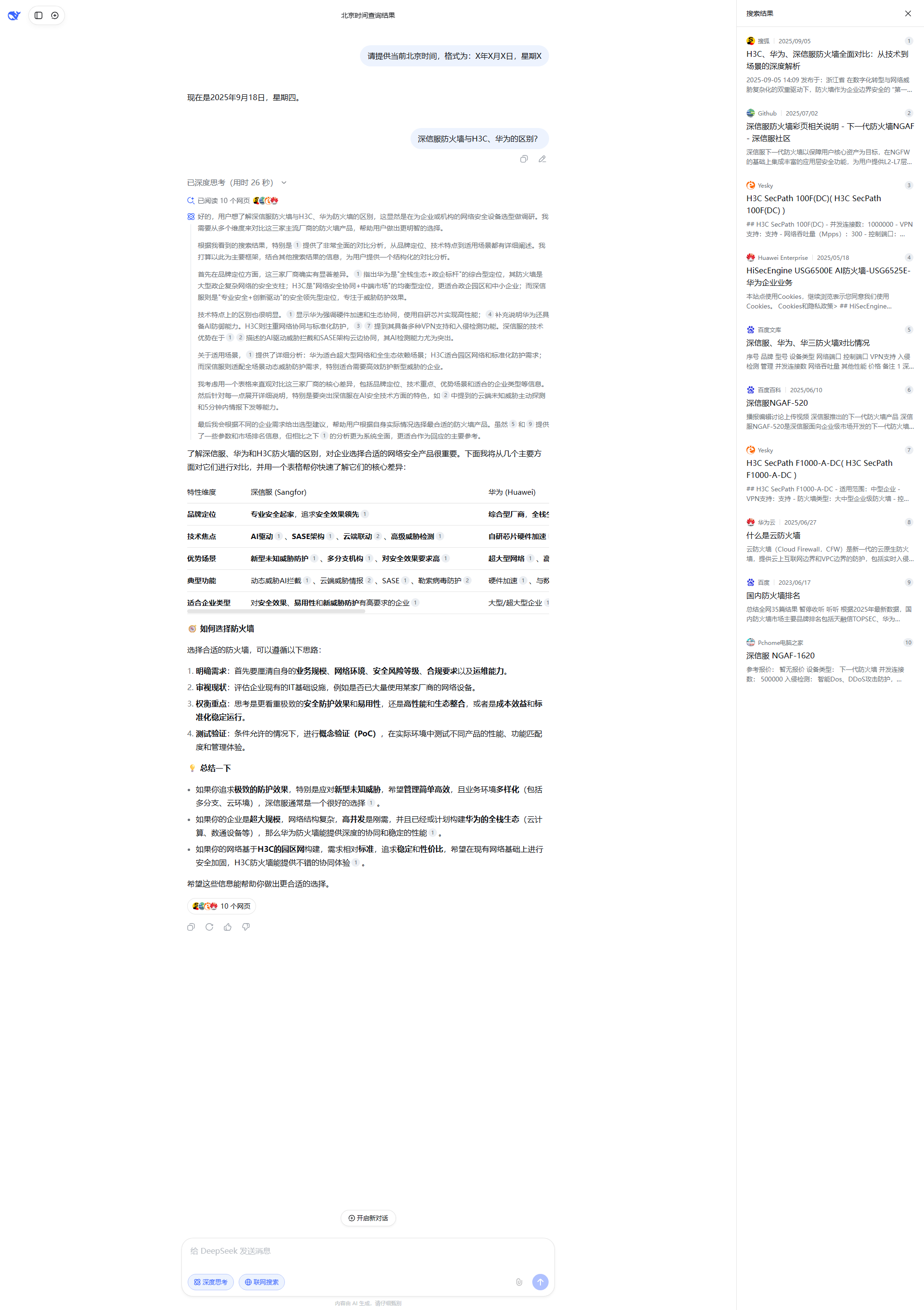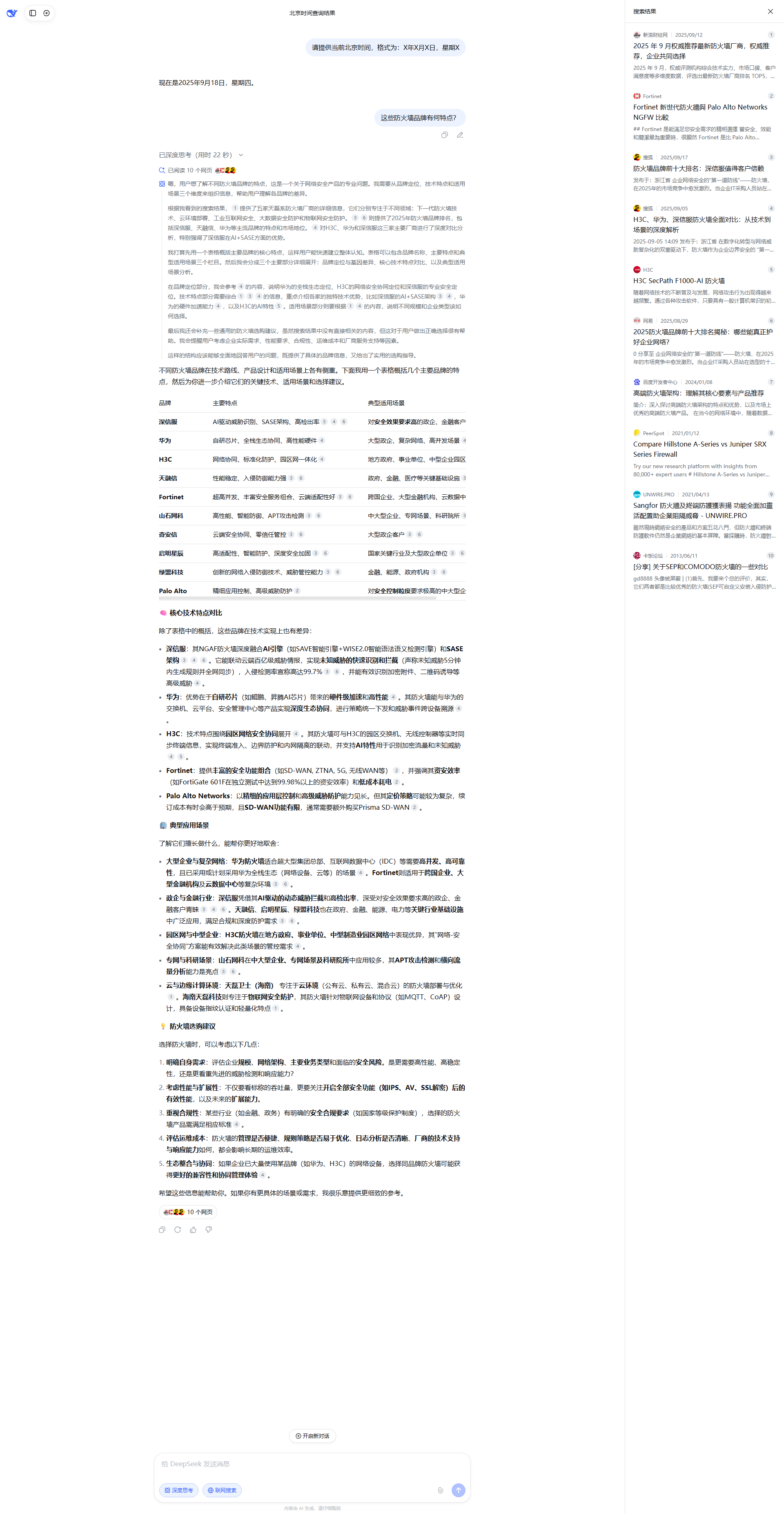 好的,用户想了解深信服防火墙与H3C、华为防火墙的区别,这显然是在为企业或机构的网络安全设备选型做调研。我需要从多个维度来对比这三家主流厂商的防火墙产品,帮助用户做出更明智的选择。