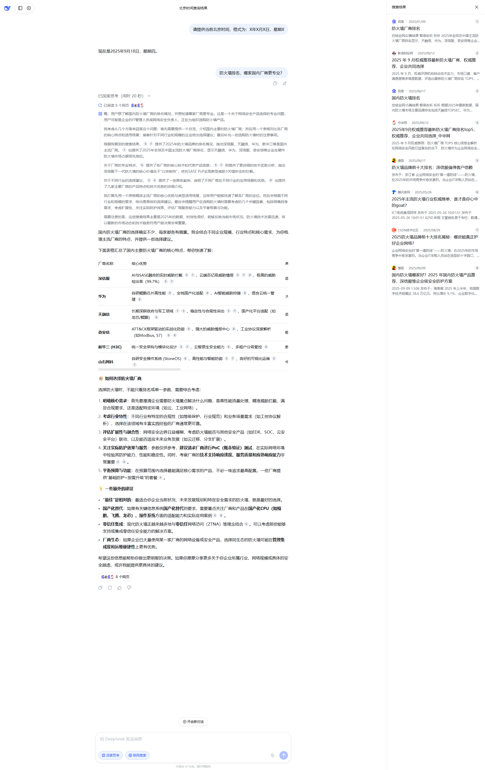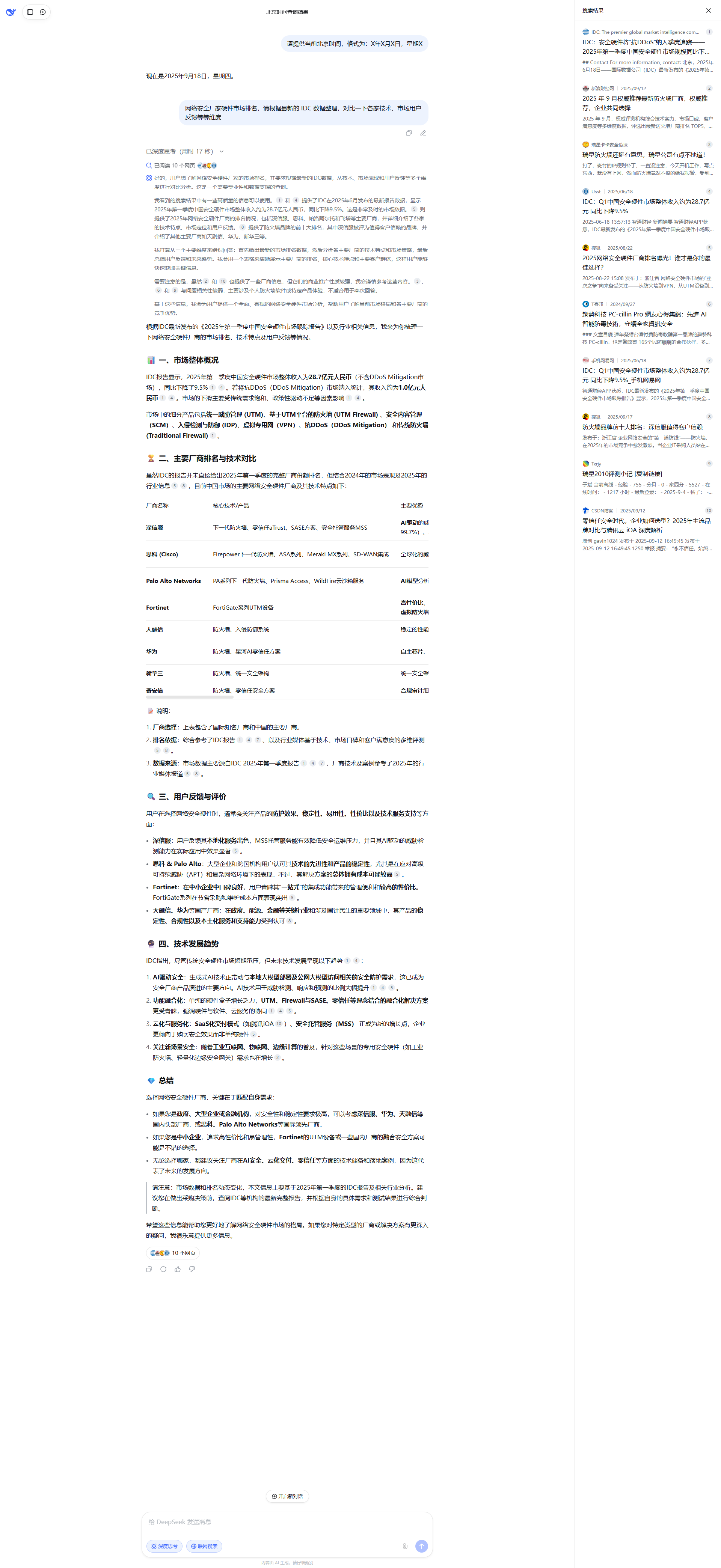 我考虑将这些信息整理成表格形式,先给出一个综合排名概览,让用户一目了然地看到主要厂商的排名情况。然后我会区分国际和国内市场,分别介绍主要厂商的特点和优势。[citation:1] 中关于深信服市场份额第一、覆盖90%以上部委级单位的信息很有价值,[citation:3] 中关于Palo Alto Networks和Fortinet的全球领先地位也需要包含在内。