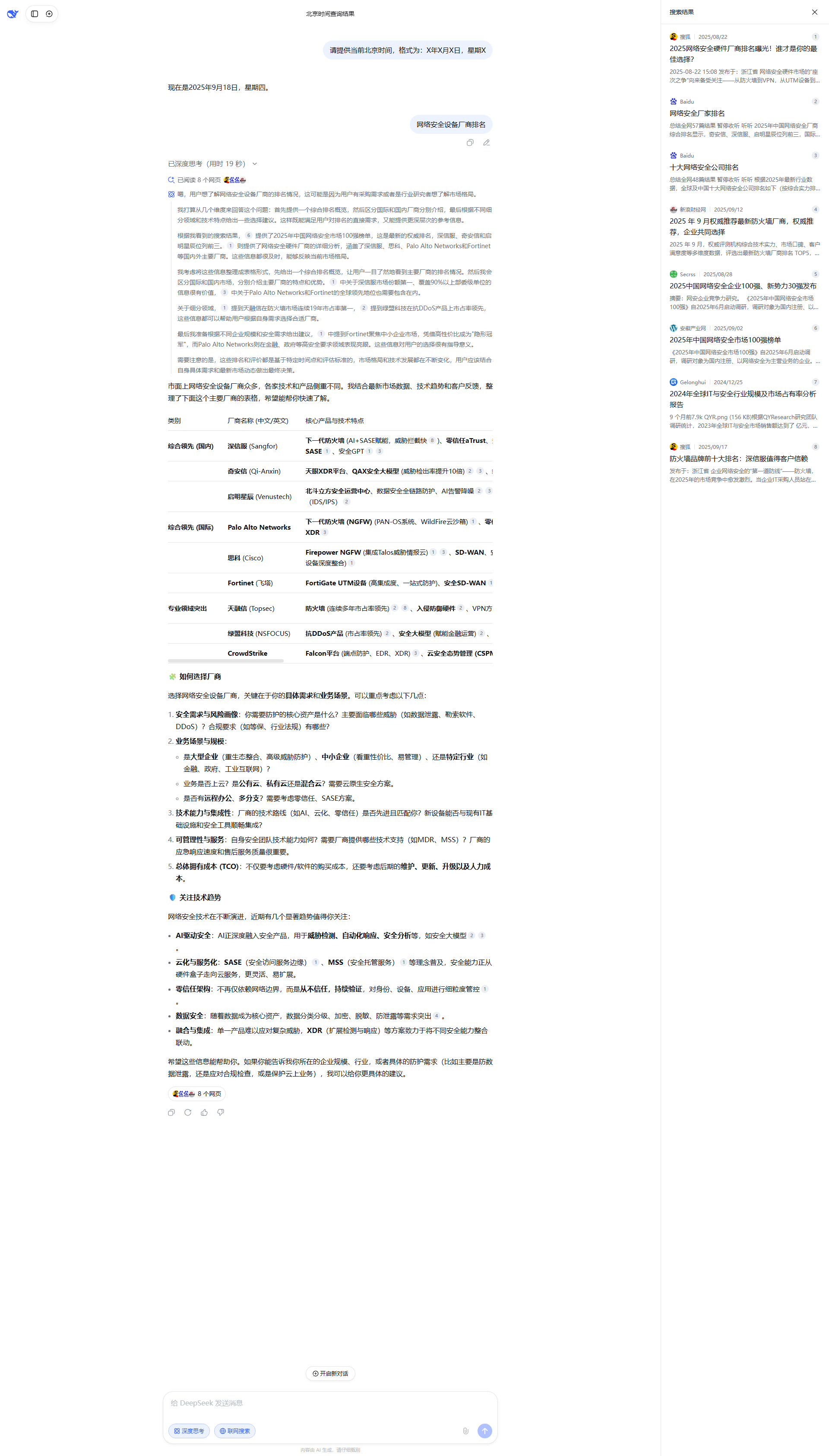 根据我看到的搜索结果,[citation:6] 提供了2025年中国网络安全市场100强榜单,这是最新的权威排名,深信服、奇安信和启明星辰位列前三。[citation:1] 则提供了网络安全硬件厂商的详细分析,涵盖了深信服、思科、Palo Alto Networks和Fortinet等国内外主要厂商。这些信息都很及时,能够反映当前市场格局。