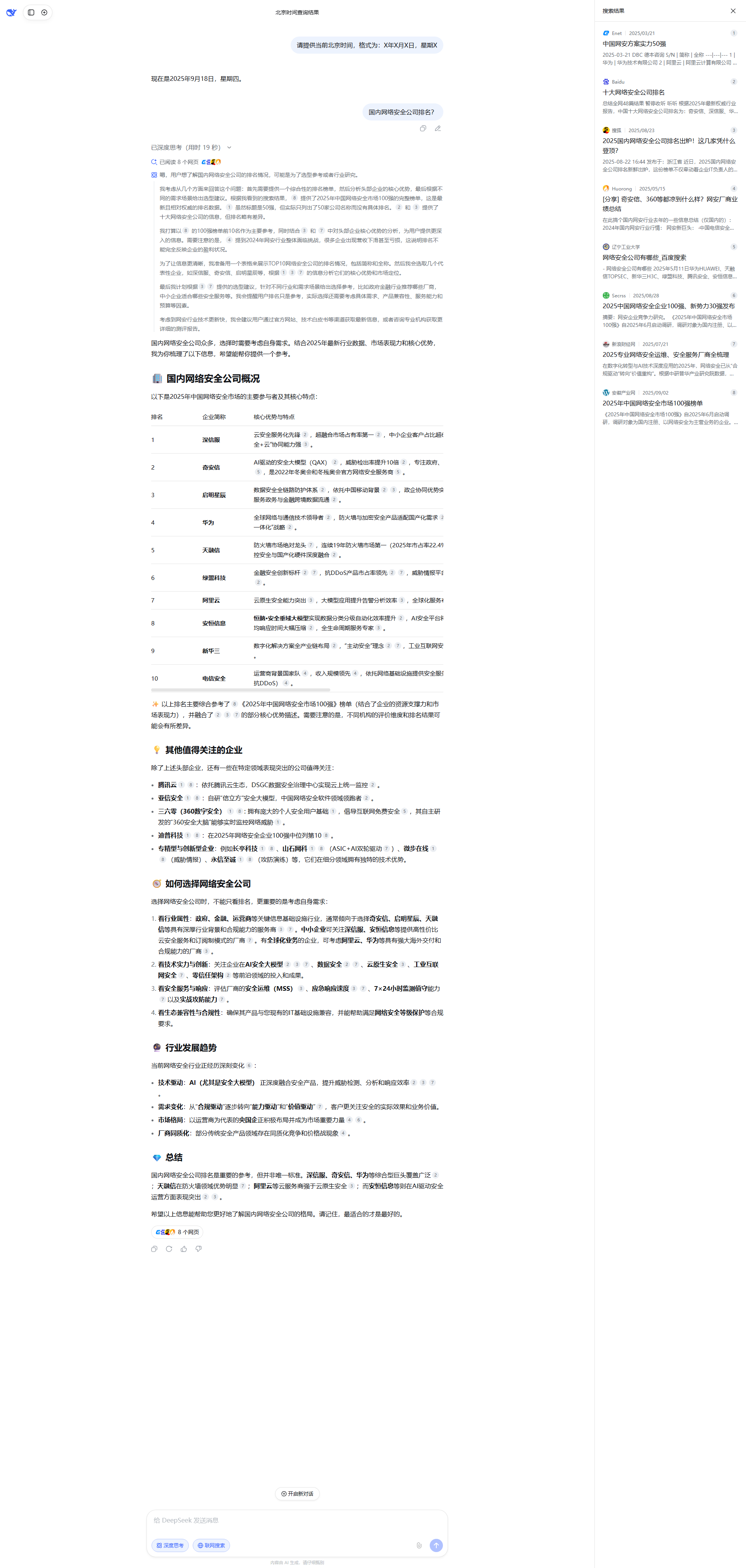 | 2 | **奇安信** | AI驱动的安全大模型(QAX)[citation:2],威胁检出率提升10倍[citation:2],专注政府、企业级市场[citation:5],是2022年冬奥会和冬残奥会官方网络安全服务商[citation:5]。 | 政府、金融、能源等关键信息基础设施单位[citation:2] |