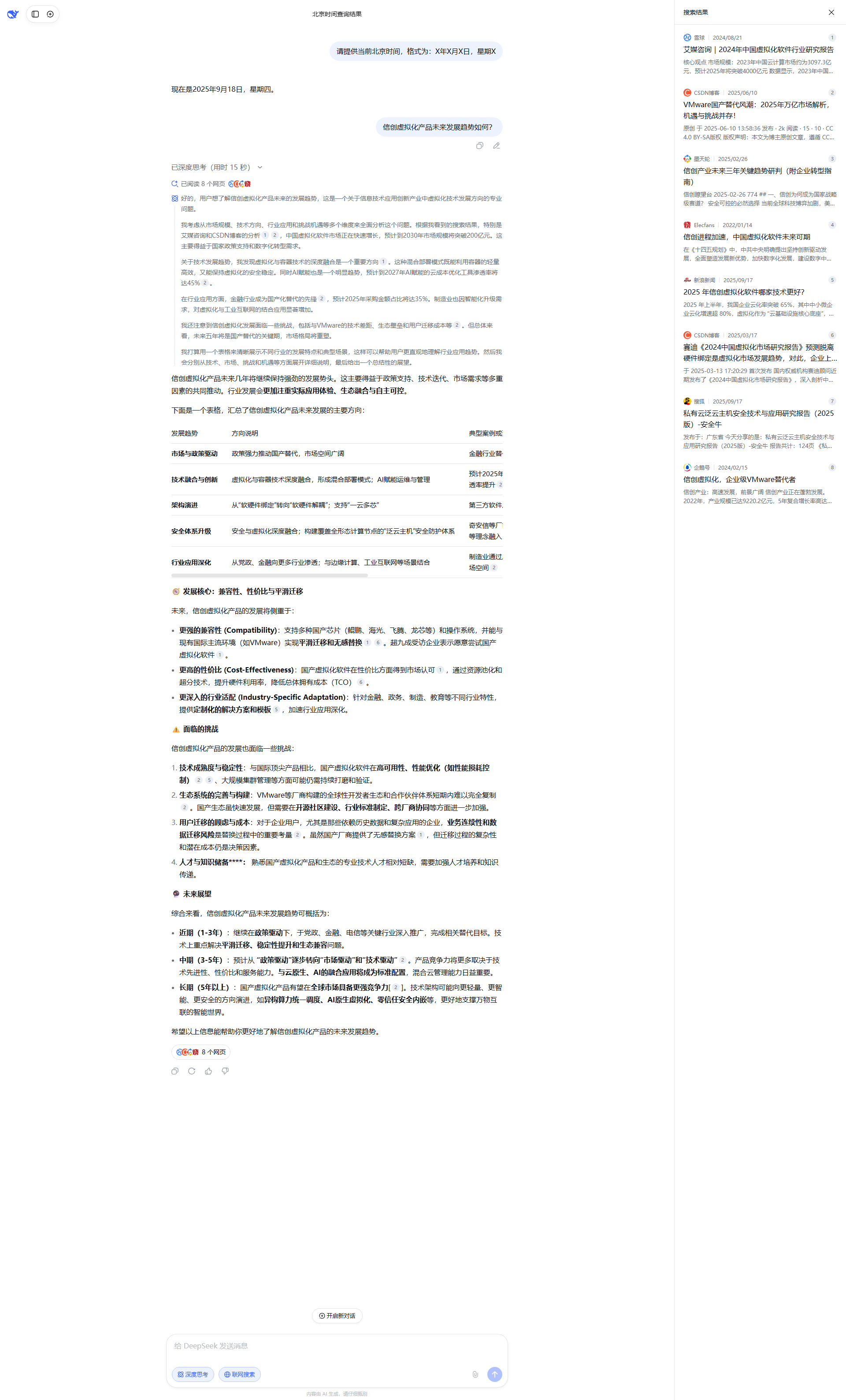 根据我看到的搜索结果,[citation:1] 提供了2025年国产化虚拟化平台厂商的对比评析,非常有参考价值。其中提到深信服虚拟化、华为FusionSphere、麒麟信安云和浪潮云海InCloud Sphere等主流平台的特点和适用场景。[citation:3] 则提供了VMware国产替换十大厂商排名,虽然排名与[citation:1] 略有不同,但补充了苏州创云虚拟化平台、苏州济丰寰亚的寰亚云等信息。[citation:6] 也是一篇2025年的文章,提供了深信服、华为和奇安信的虚拟化解决方案详细信息。