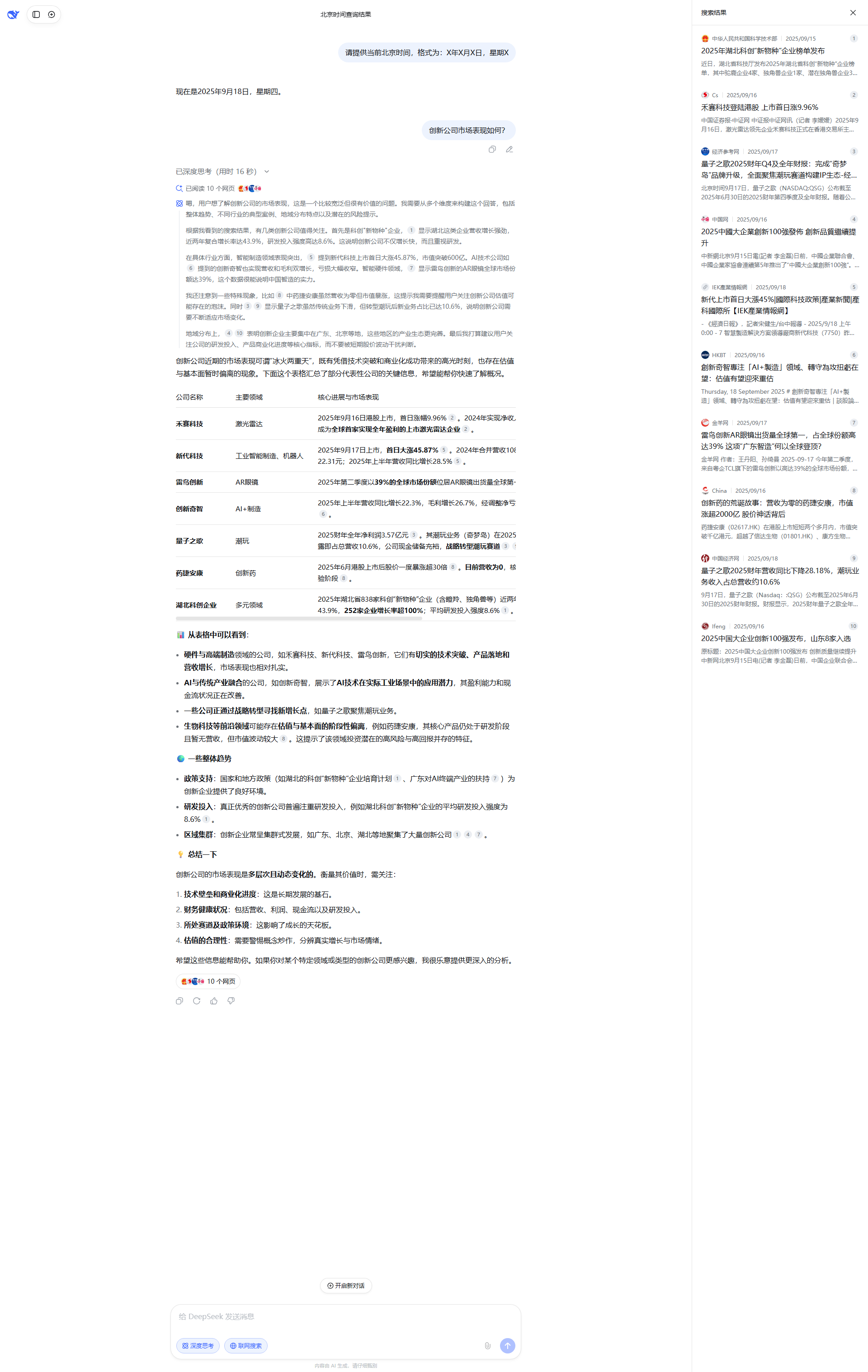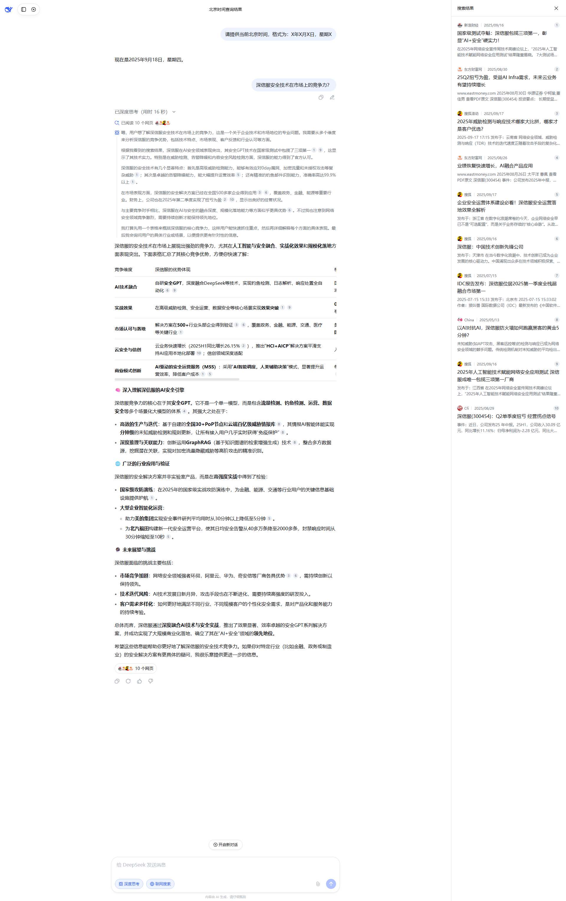 系统根据用户输入的提示词,实时查询结果并分析。