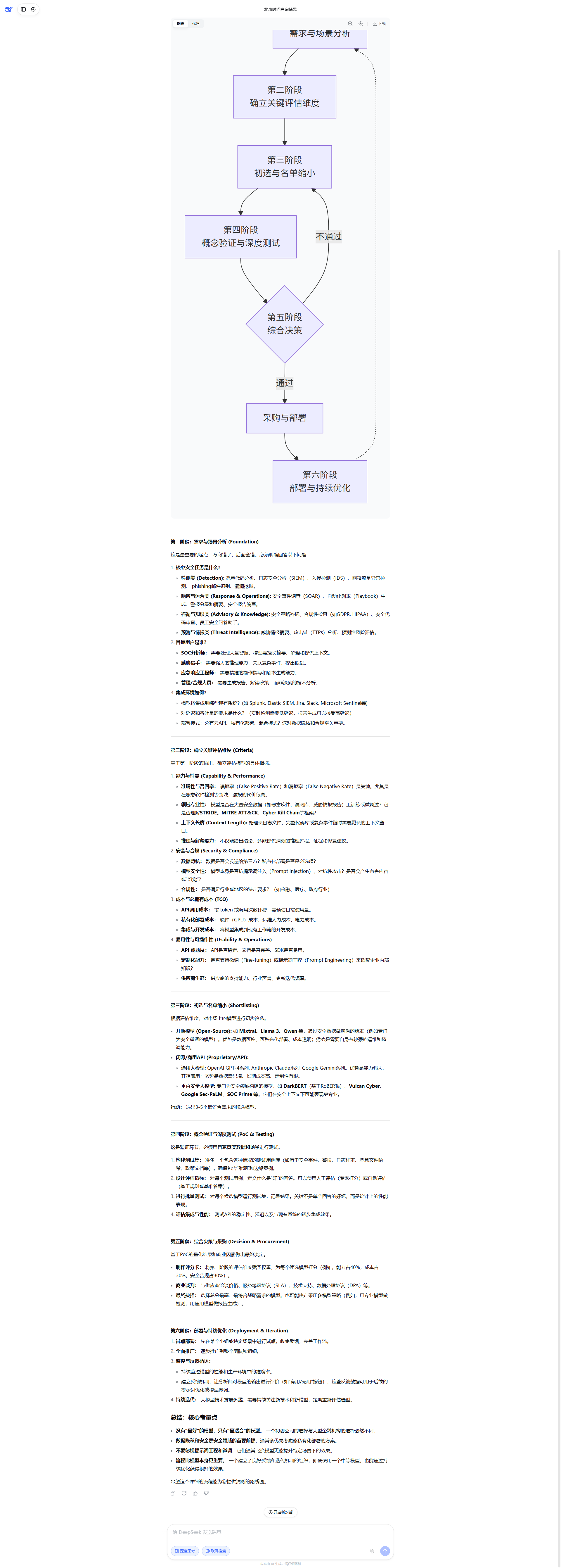 以下是一套详细、可操作的**安全大模型选择流程**,涵盖了从需求分析到部署上线的关键步骤。