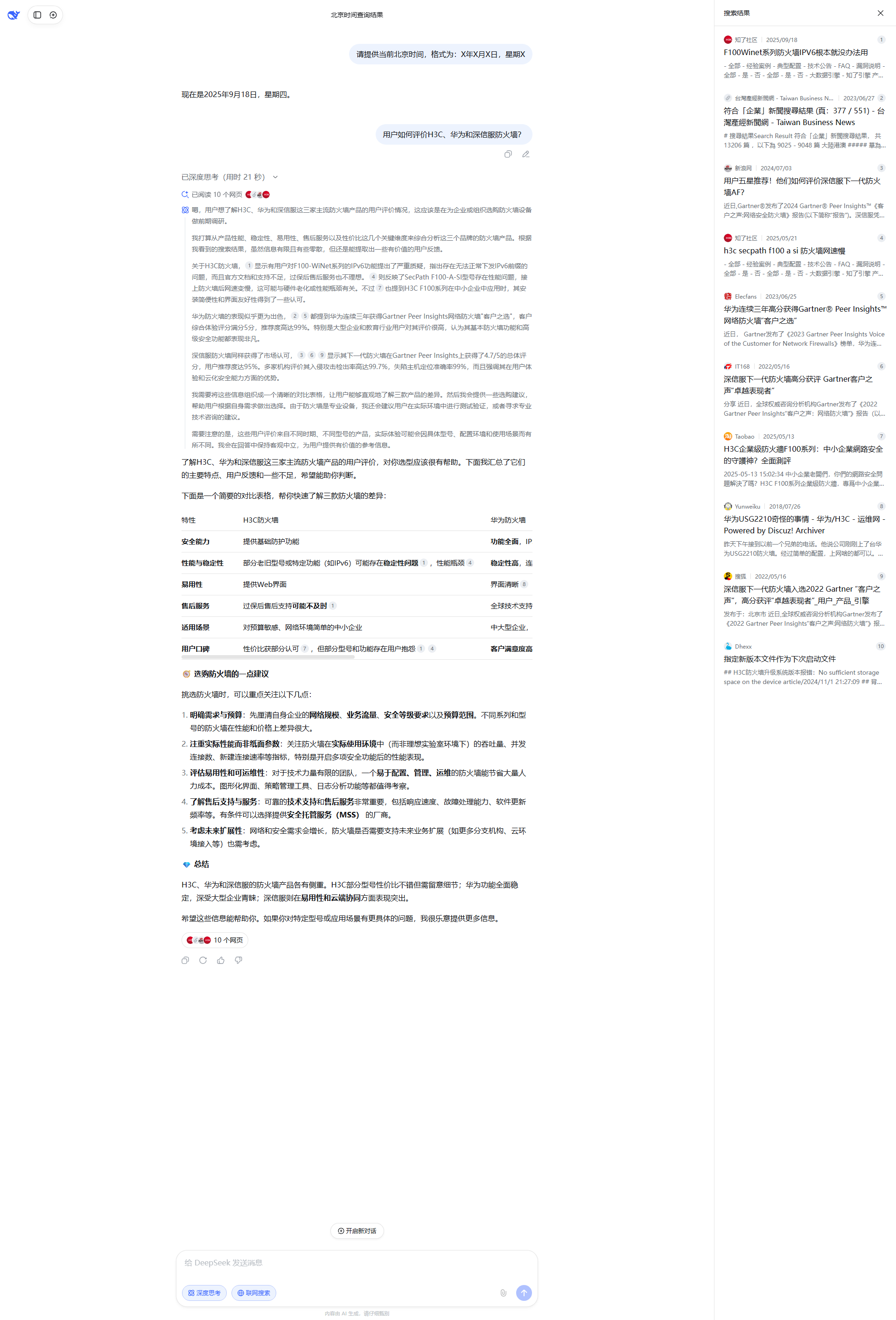 嗯,用户想了解H3C、华为和深信服这三家主流防火墙产品的用户评价情况,这应该是在为企业或组织选购防火墙设备做前期调研。
