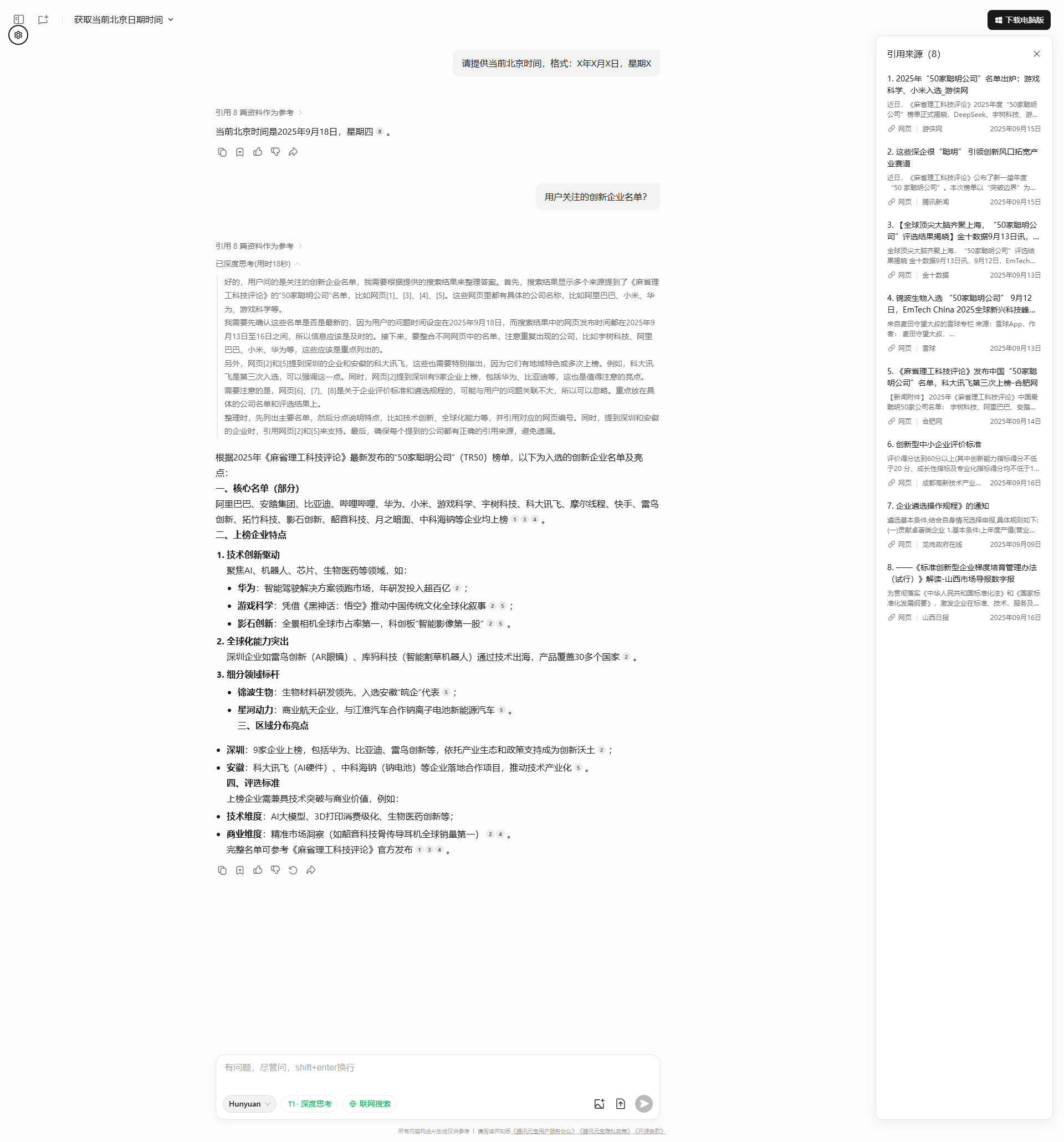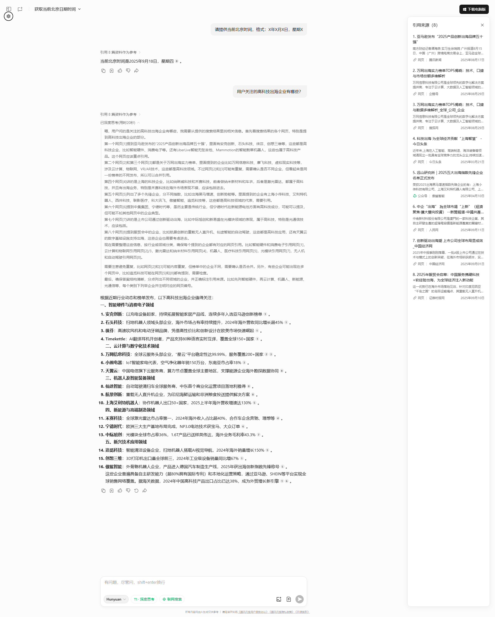 https://flash.jin10.... | 【全球顶尖大脑齐聚上海,“50家聪明公司”评选结果揭晓】金十数据9月13日讯,9月12日,EmTech China 2025全球新兴科技峰会暨“50家聪明公司”(TR50)发布仪式在上海静安国际科创社区启幕。 现场,《麻省理工科技评论》“50家聪明公司”最新评选结果揭晓。今年入选的企业名单为:宇树科技、宇树科技、阿里巴巴、安踏集团、小米集团、游戏科学、月之暗面、摩尔线程、快手、英伟达、华为、深度求索、硅基流动、科大讯飞等。 - 金十数据 |