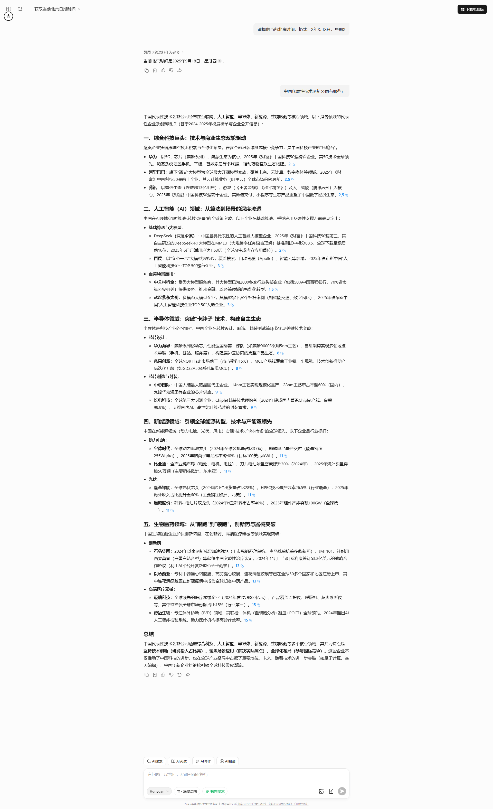 中国代表性技术创新公司涵盖**综合科技、人工智能、半导体、新能源、生物医药**等多个核心领域,其共同特点是:**坚持技术创新(研发投入占比高)、聚焦场景应用(解决实际痛点)、全球化布局(参与国际竞争)**。这些企业不仅推动了中国科技的进步,也在全球产业格局中占据了重要地位。未来,随着技术的进一步突破(如量子计算、基因编辑),中国创新企业将继续引领全球科技发展潮流。
