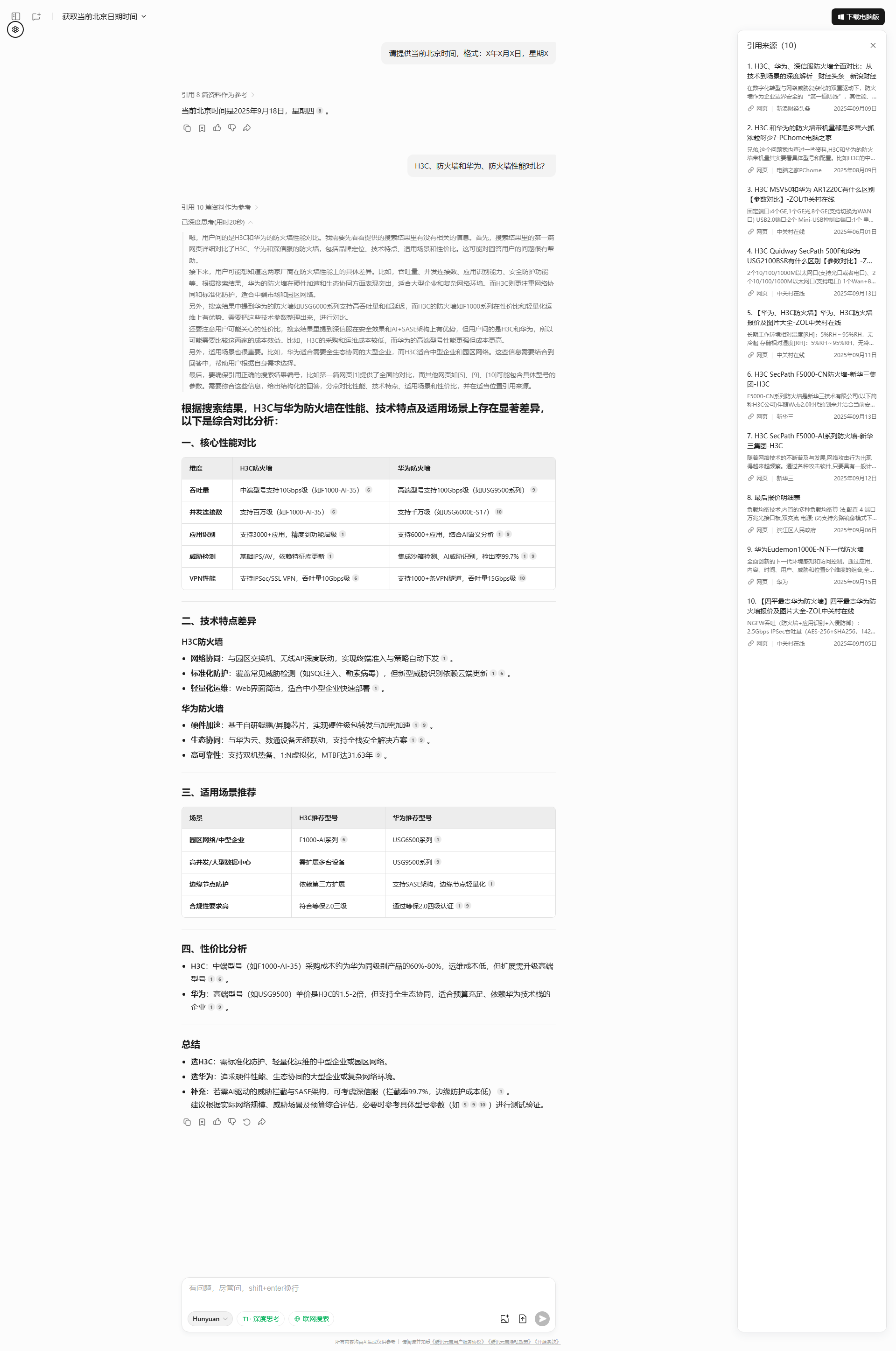 https://t.cj.sina.co... | H3C、华为、深信服防火墙全面对比:从技术到场景的深度解析__财经头条__新浪财经 |