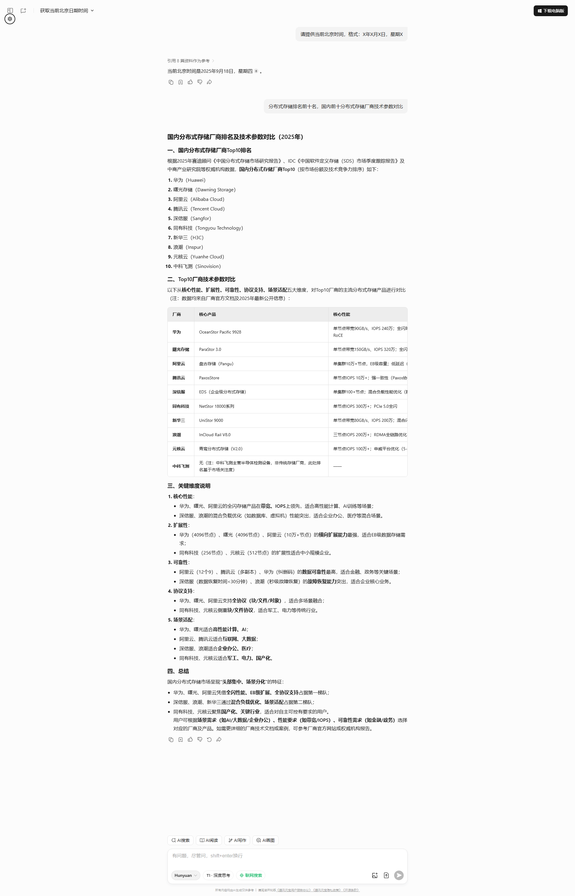 - **AI训练/HPC场景**:优先选择**浪潮存储**(高吞吐、低时延)或**华为**(全栈AI优化)[citation:1][citation:7]。
