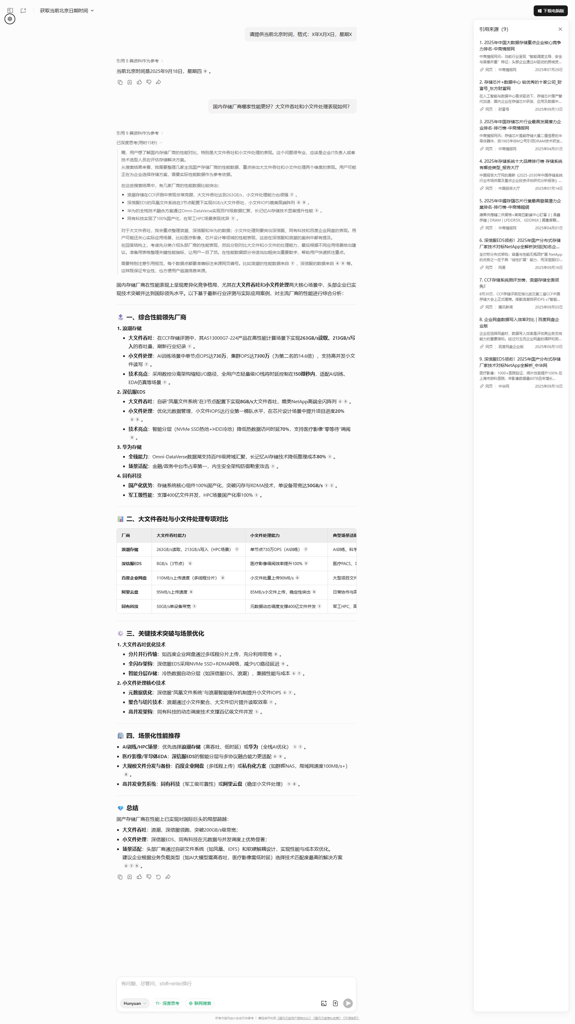 需要特别注意引用规范,每个数据点都要准确标注来源网页编号。比如浪潮的性能数据来自[citation:7],深信服的数据来自[citation:6][citation:9]等。这样既保证专业性,也方便用户追溯信息来源。