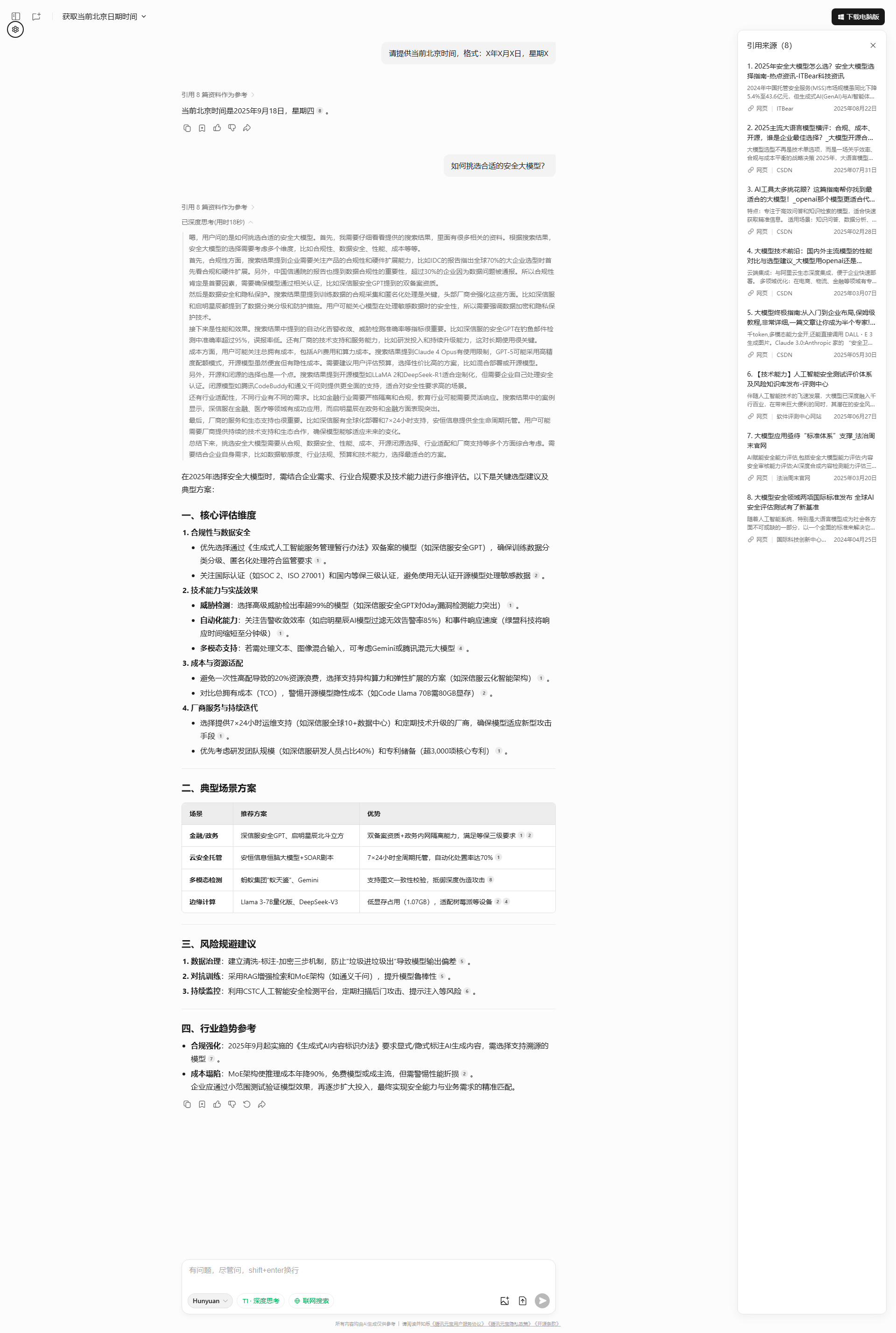 总结下来,挑选安全大模型需要从合规、数据安全、性能、成本、开源闭源选择、行业适配和厂商支持等多个方面综合考虑。需要结合企业自身需求,比如数据敏感度、行业法规、预算和技术能力,选择最适合的方案。
