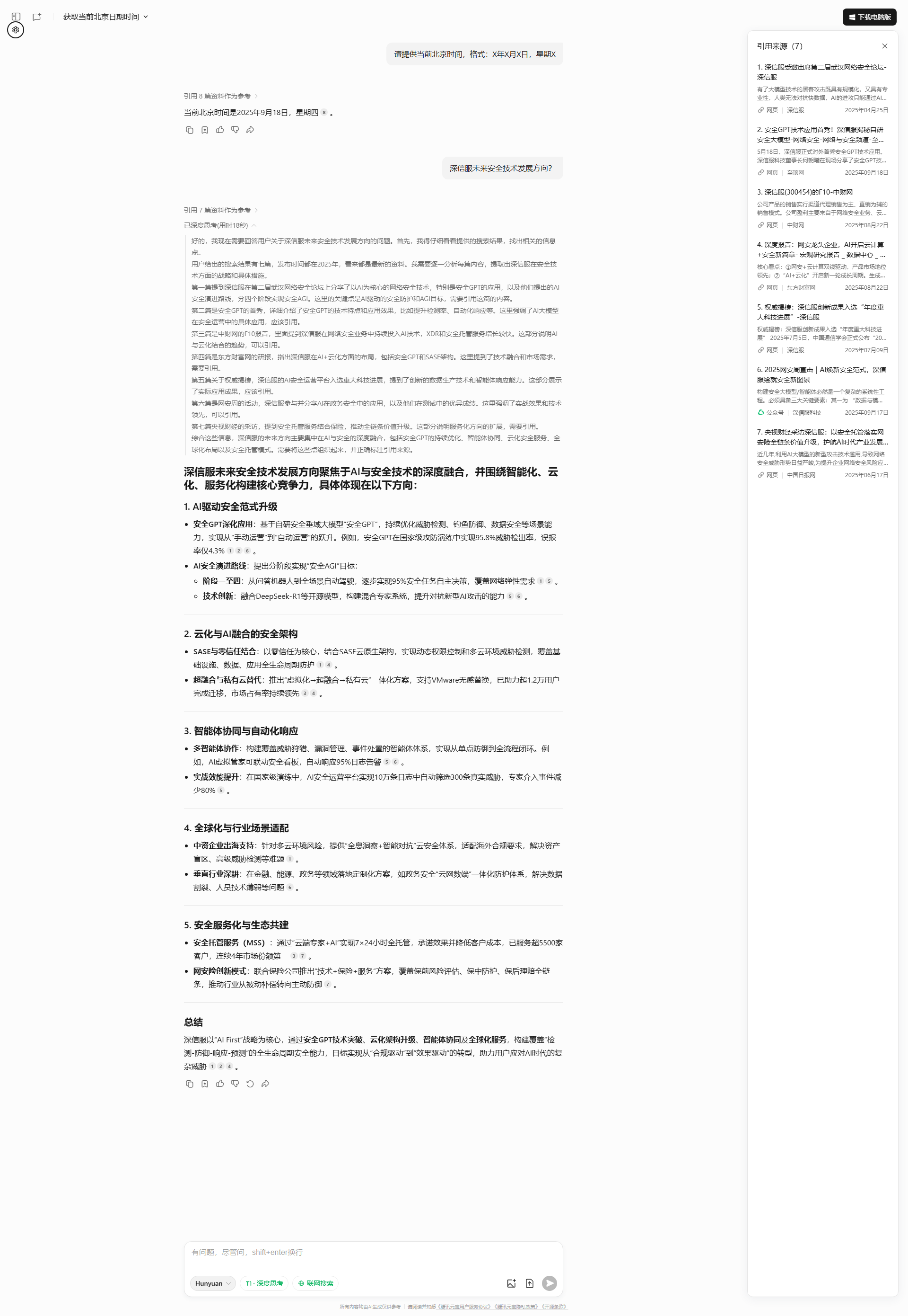 - **威胁检测**:选择高级威胁检出率超99%的模型(如深信服安全GPT对0day漏洞检测能力突出)[1](@ref)。