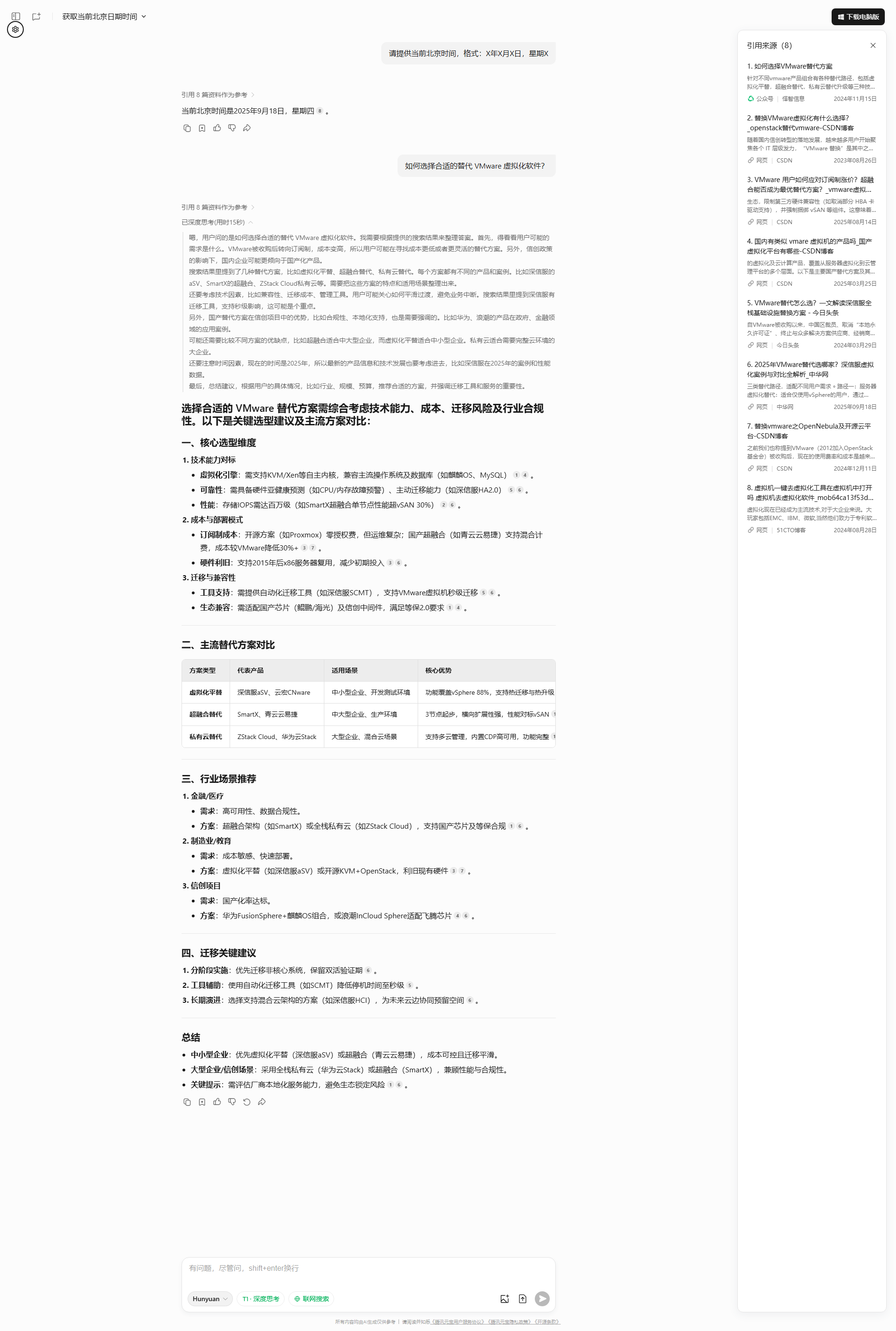 | **云宏** | VMware无感替换方案,支持双轨并行运行,轻量化部署[3,7](@ref)| 中小企业、金融核心系统过渡 | 某城商行:业务连续性保障达99.99% |