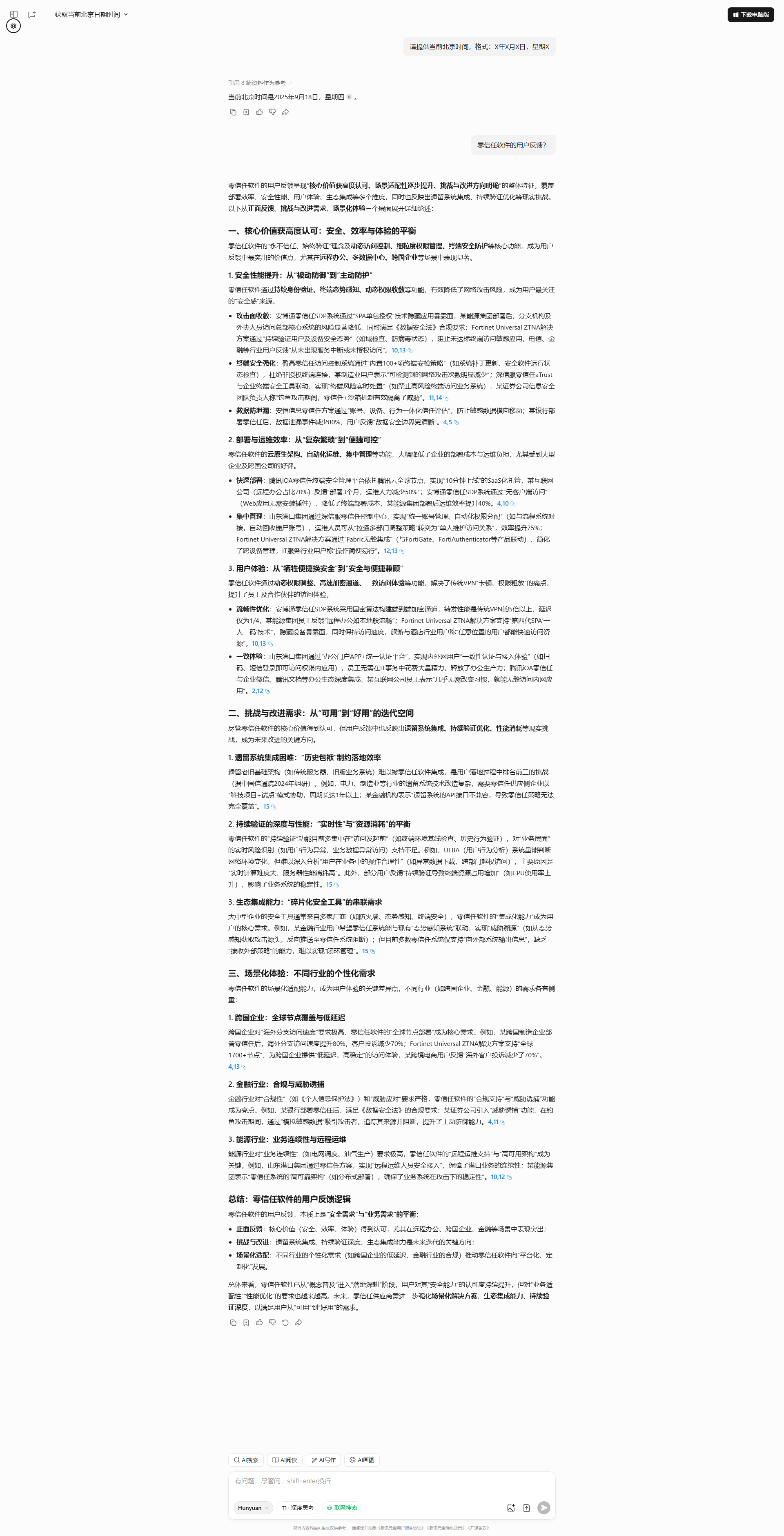 - **正面反馈**:核心价值(安全、效率、体验)得到认可,尤其在远程办公、跨国企业、金融等场景中表现突出;