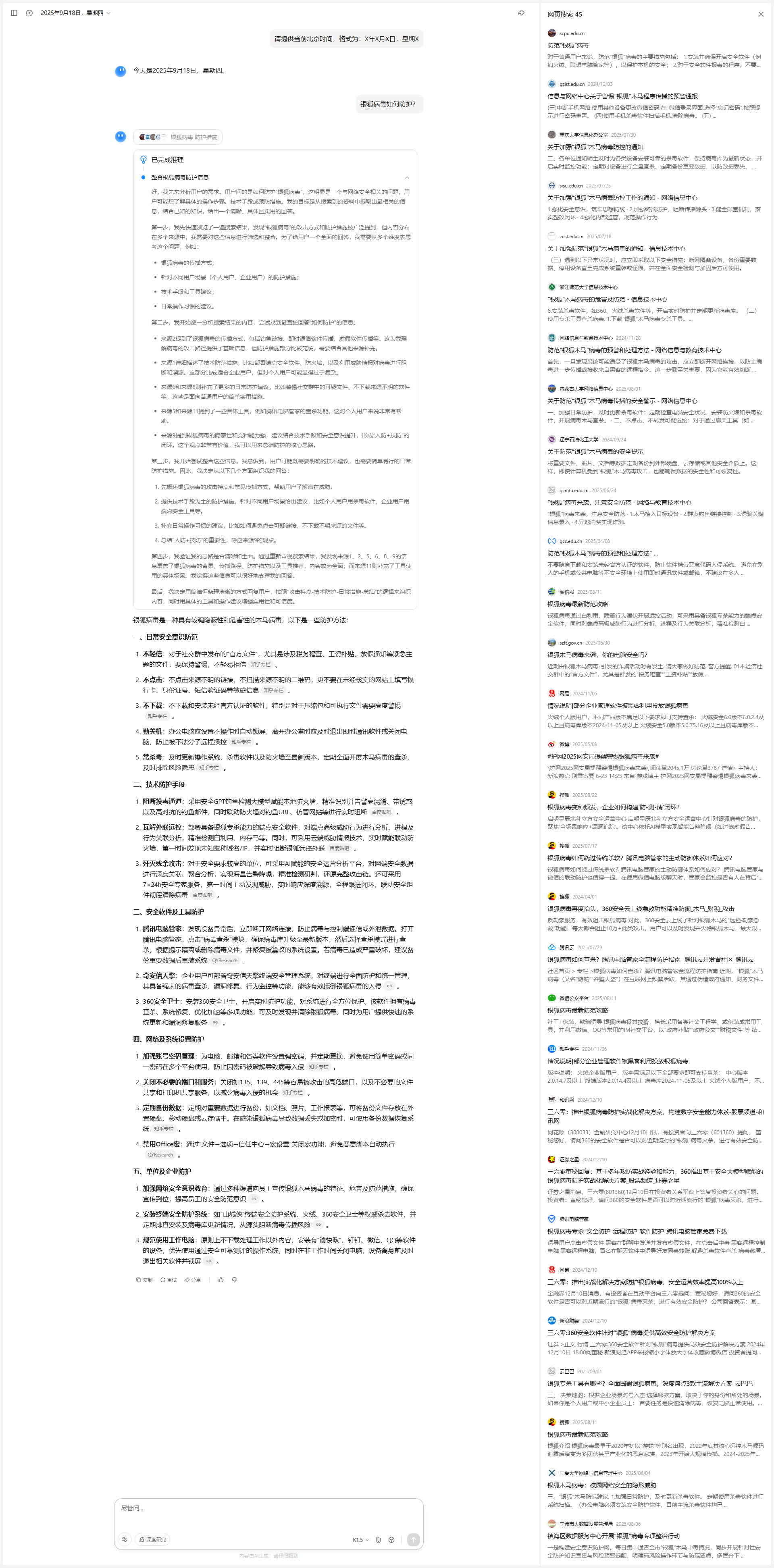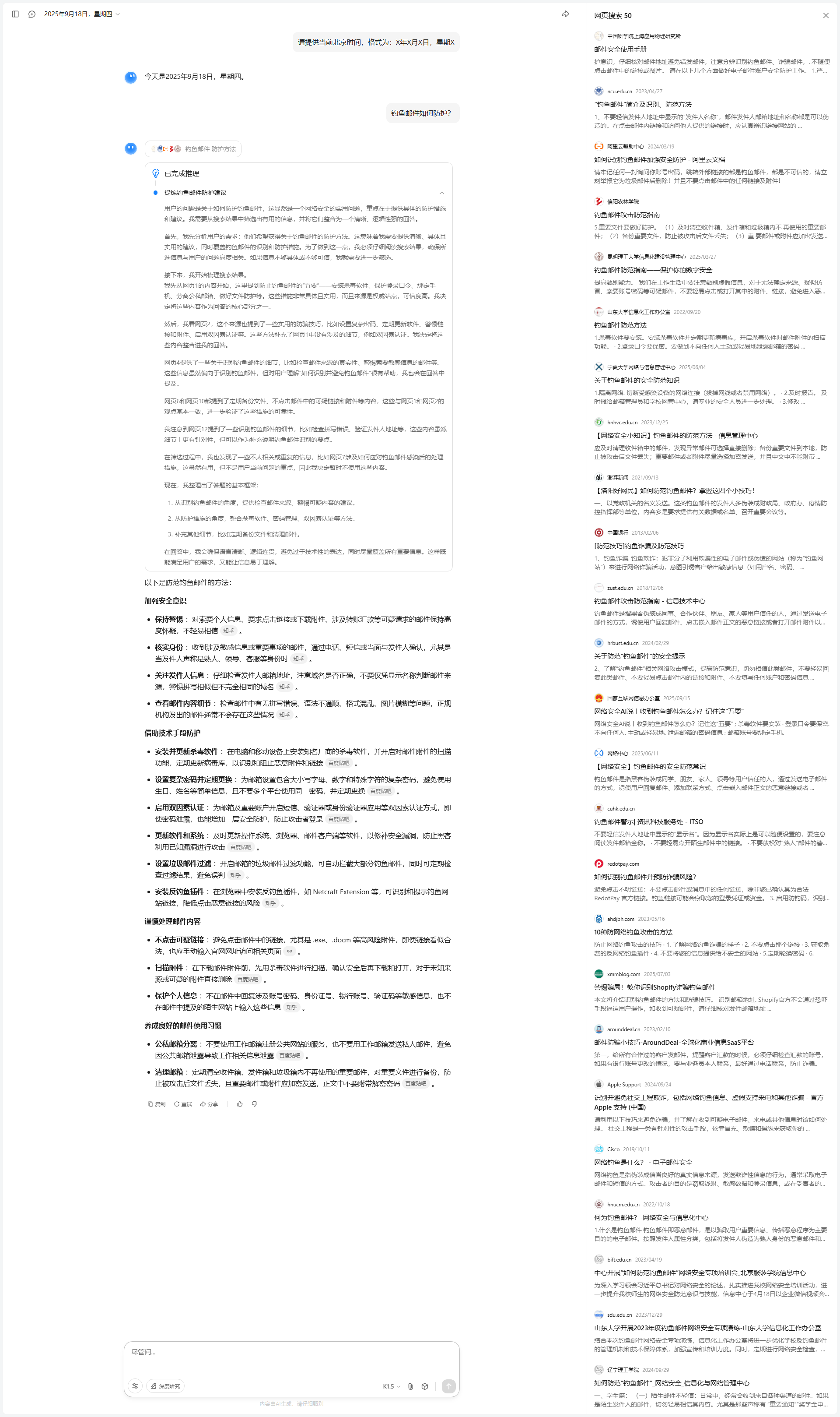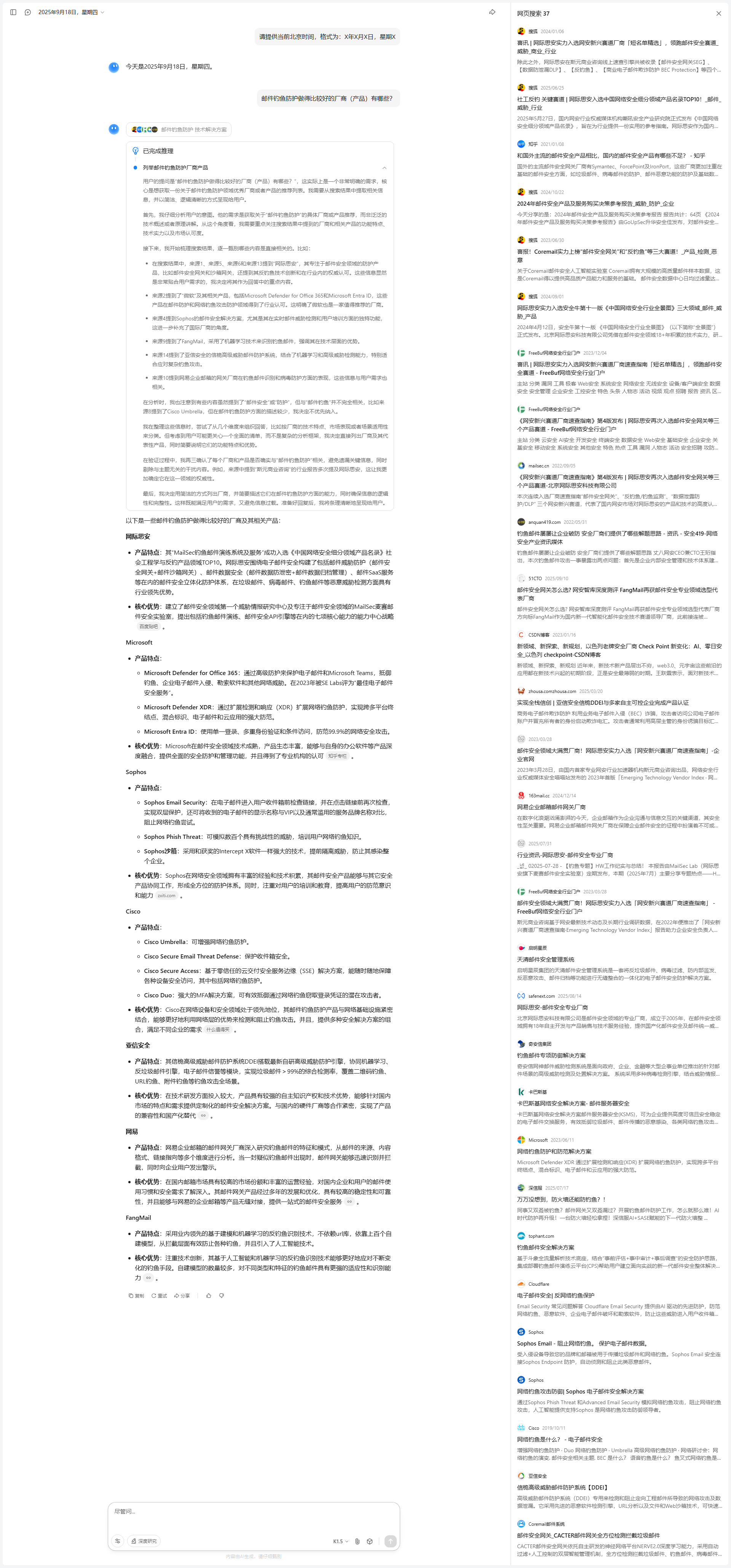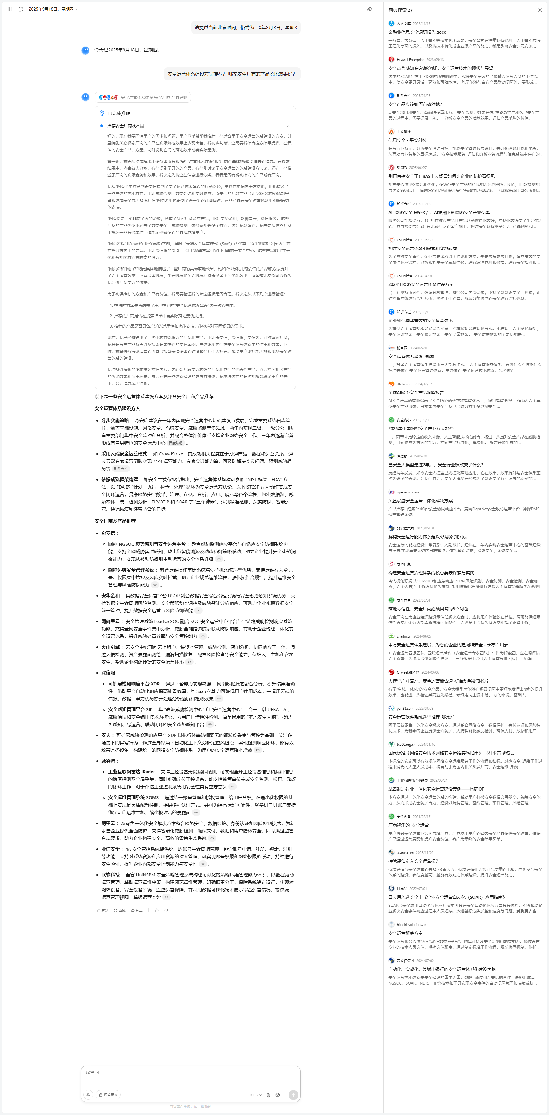 我拿到搜索结果后,快速浏览了一遍,发现里面有不少相关的信息,但也有一些内容与用户的需求关联不大,需要仔细甄别筛选。比如有关亚信科技在通信等多行业的大模型应用情况,以及奇安信、深信服等在网络安全领域的安全大模型应用情况,这些都比较符合用户想要了解的国内安全大模型做得好的厂商的要求,而像介绍360智脑在综合大模型测试中的排名等信息,就与用户的问题关联度较低。