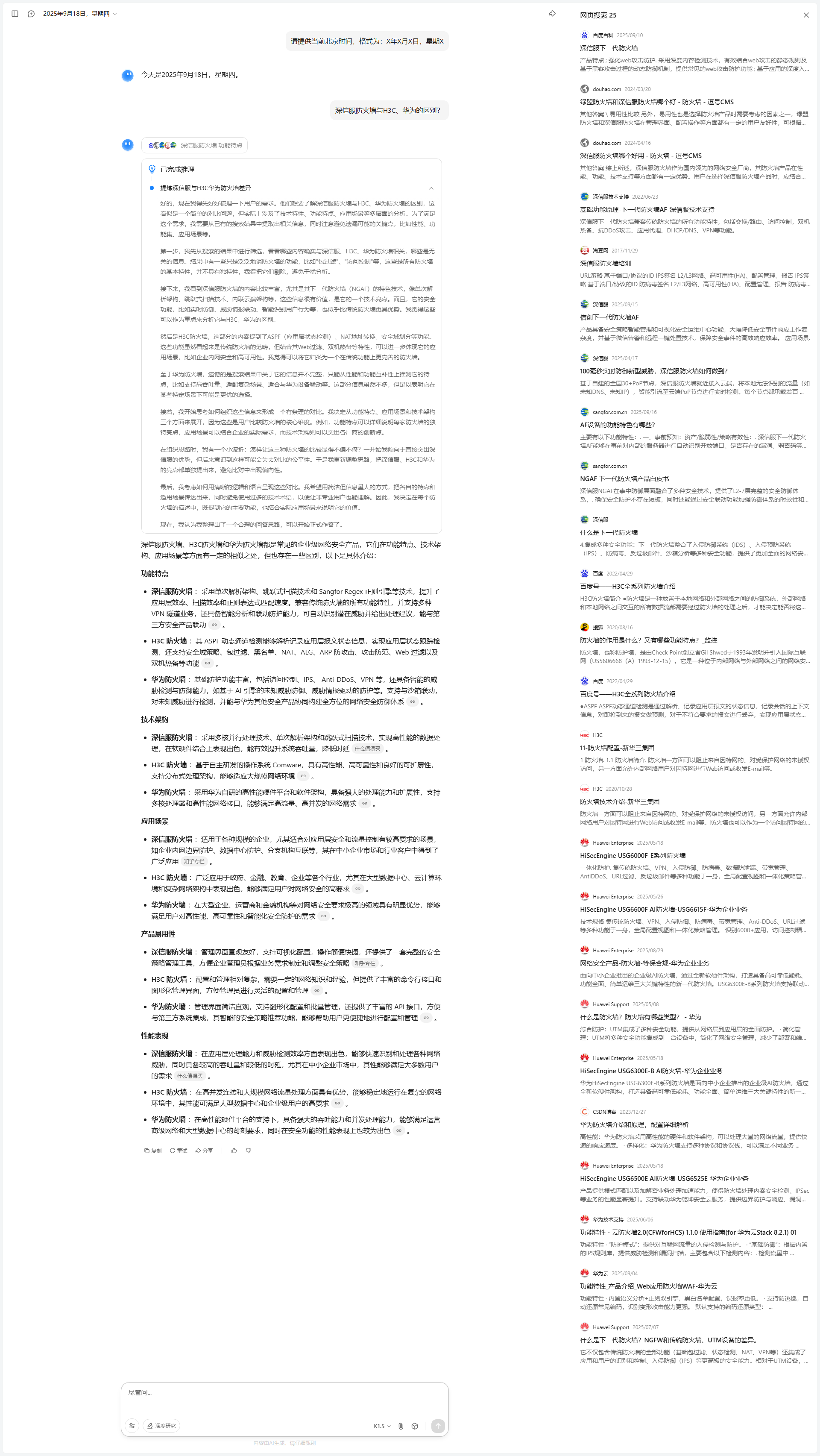 在组织思路时,我有一个小波折:怎样让这三种防火墙的比较显得不偏不倚?一开始我倾向于直接突出深信服的优势,但后来意识到这样可能会失去对比的公平性。于是我重新调整思路,把深信服、H3C和华为的亮点都单独提出来,避免比对中出现偏向性。