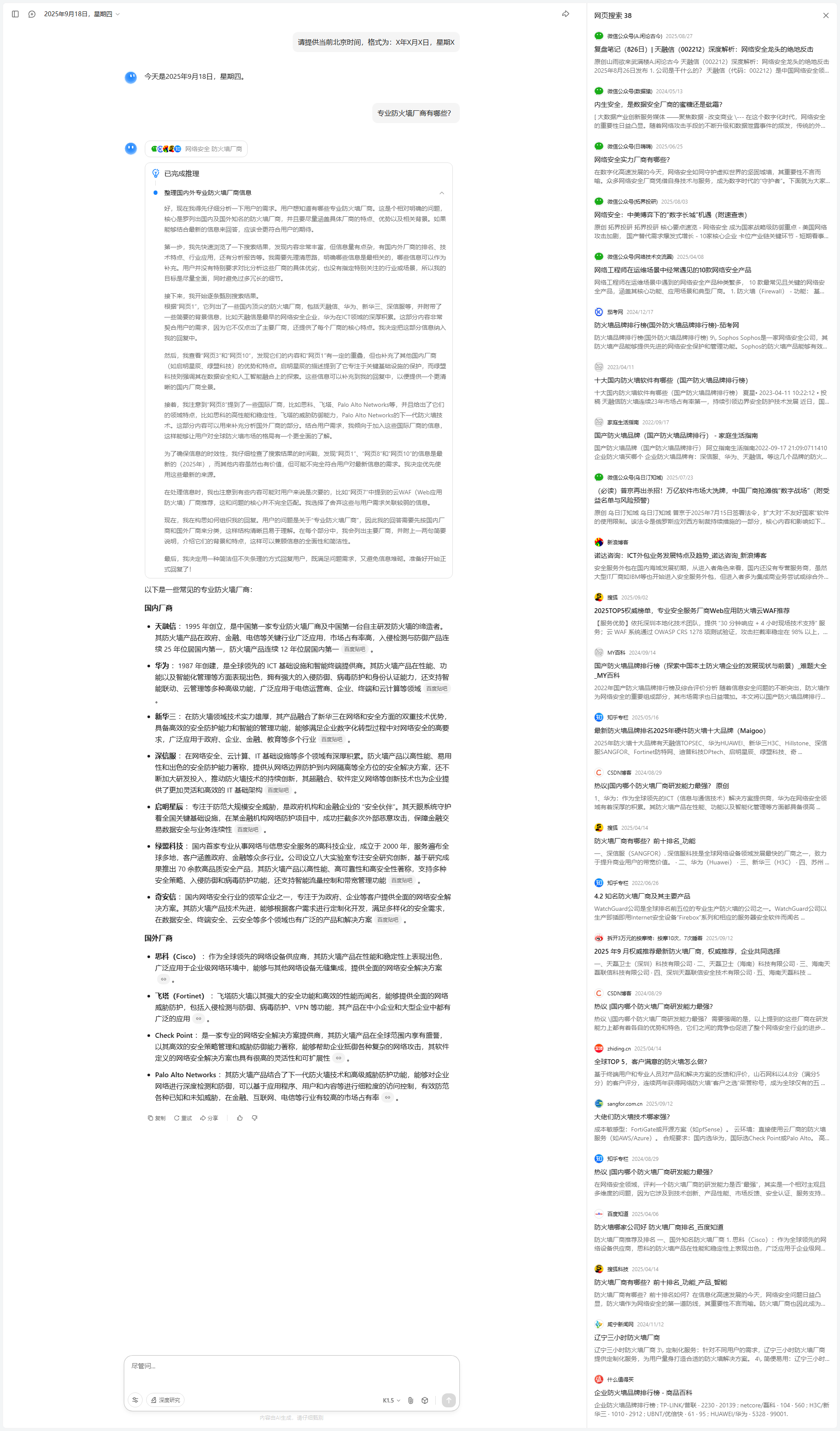 好,现在我得先仔细分析一下用户的需求。用户想知道有哪些专业防火墙厂商。这是个相对明确的问题,核心是罗列出国内及国外知名的防火墙厂商,并且要尽量涵盖具体厂商的特点、优势以及相关背景。如果能够结合最新的信息来回答,应该会更符合用户的期待。