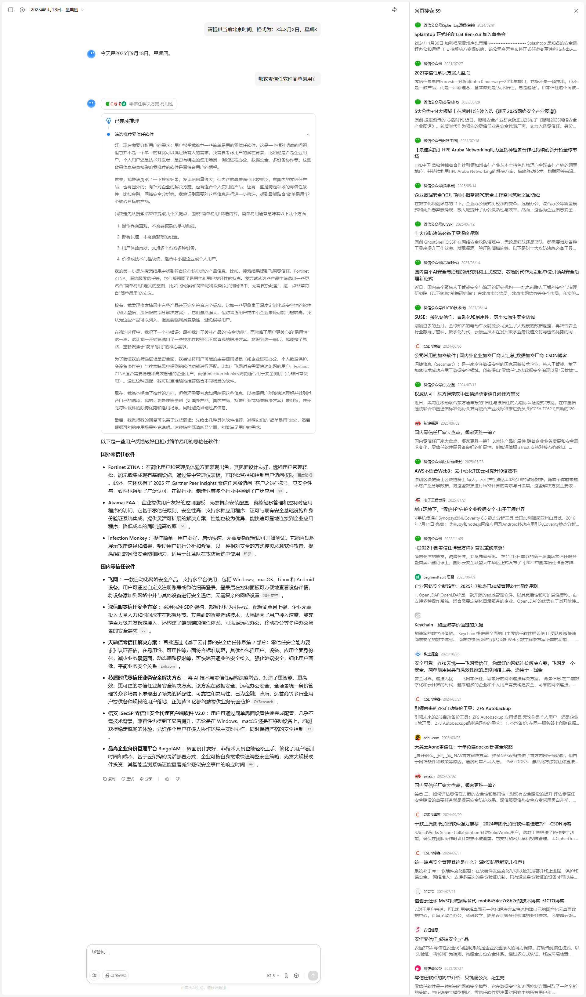 首先,我快速浏览了一下搜索结果,发现信息量很大,但内容的覆盖面也比较宽泛,有国内的零信任产品,也有国外的;有针对企业的解决方案,也有适合个人使用的产品;还有一些是特定领域的零信任软件,比如金融、网络安全分析等。我意识到需要对这些信息进行进一步筛选,找到最能贴合“简单易用”这个核心目标的产品。