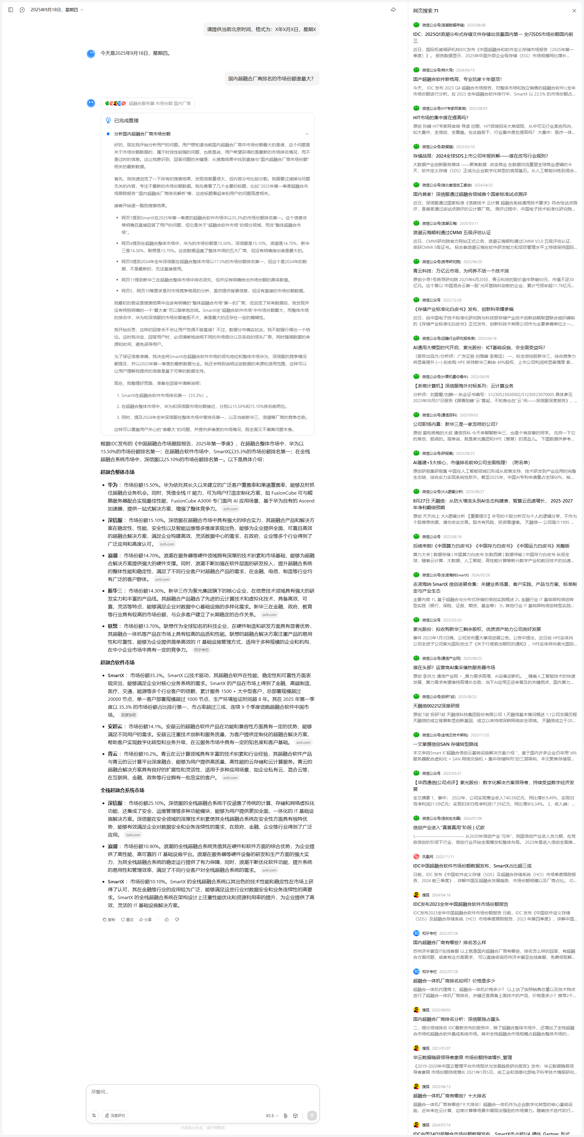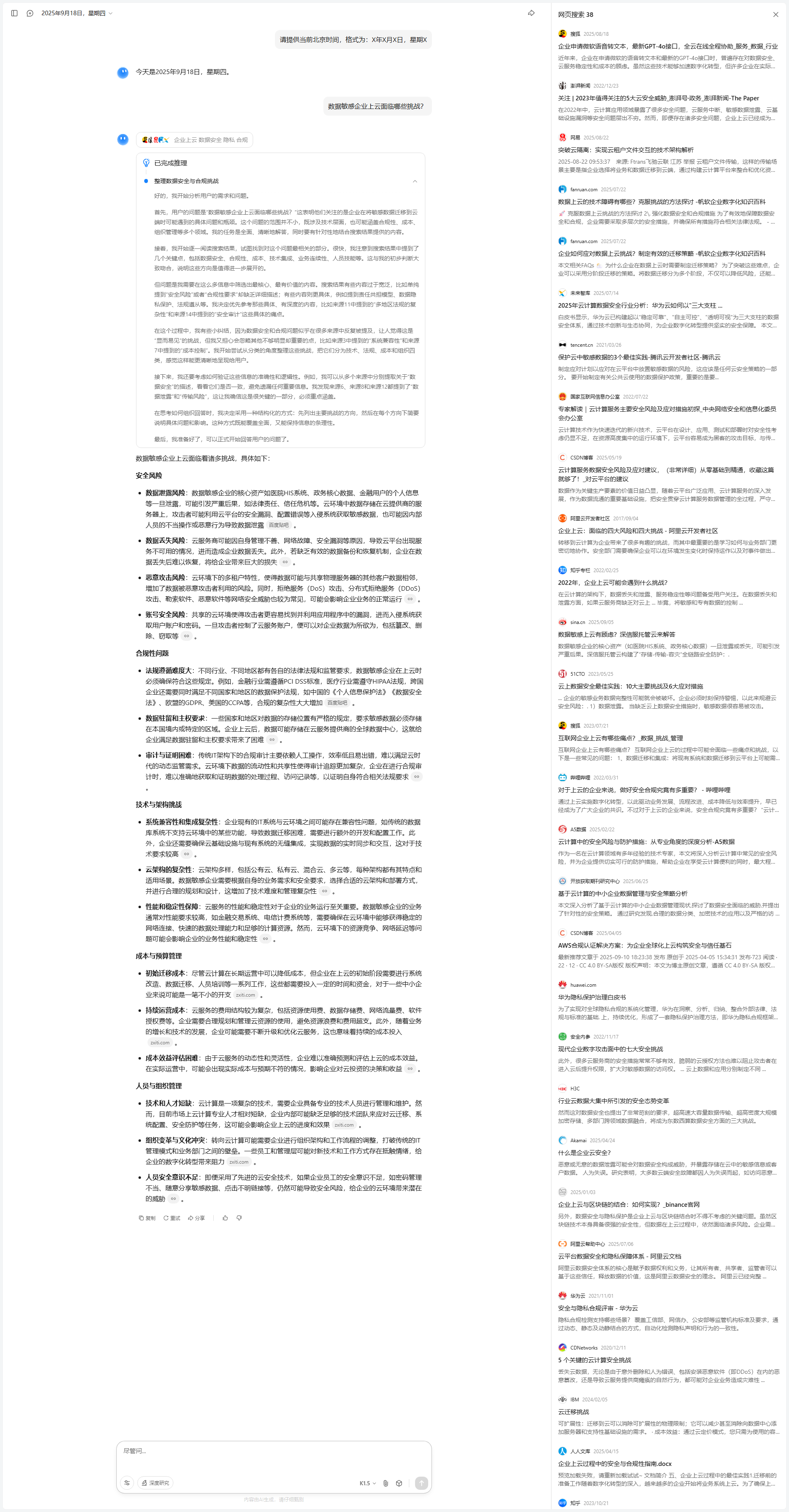 系统根据用户输入的提示词,实时查询结果并分析。