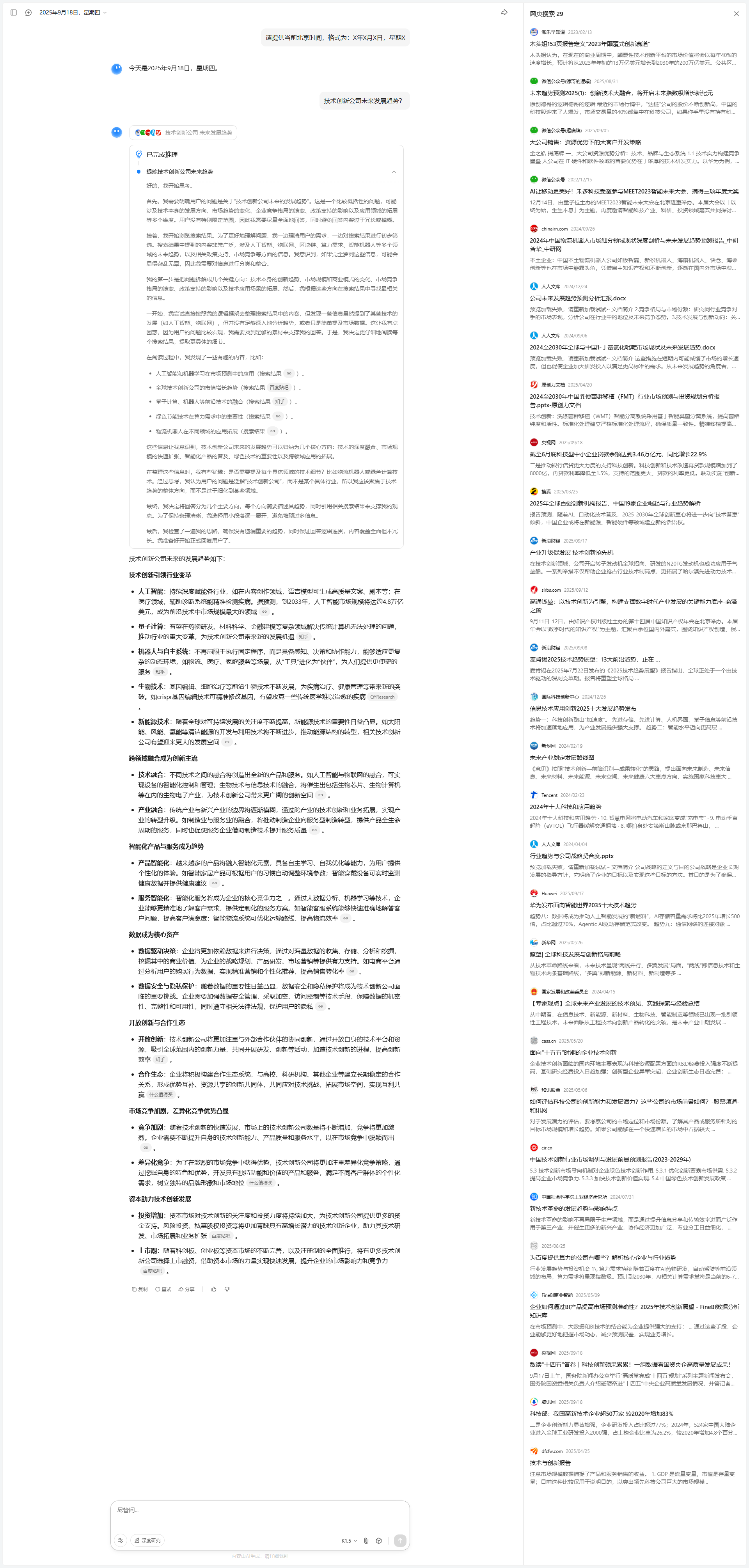 在整理这些信息时,我有些犹豫:是否需要提及每个具体领域的技术细节?比如物流机器人或绿色计算技术。经过思考,我认为用户的问题是泛指“技术创新公司”,而不是某个具体行业,所以我应该聚焦于技术趋势的整体方向,而不是过于细化到某些领域。