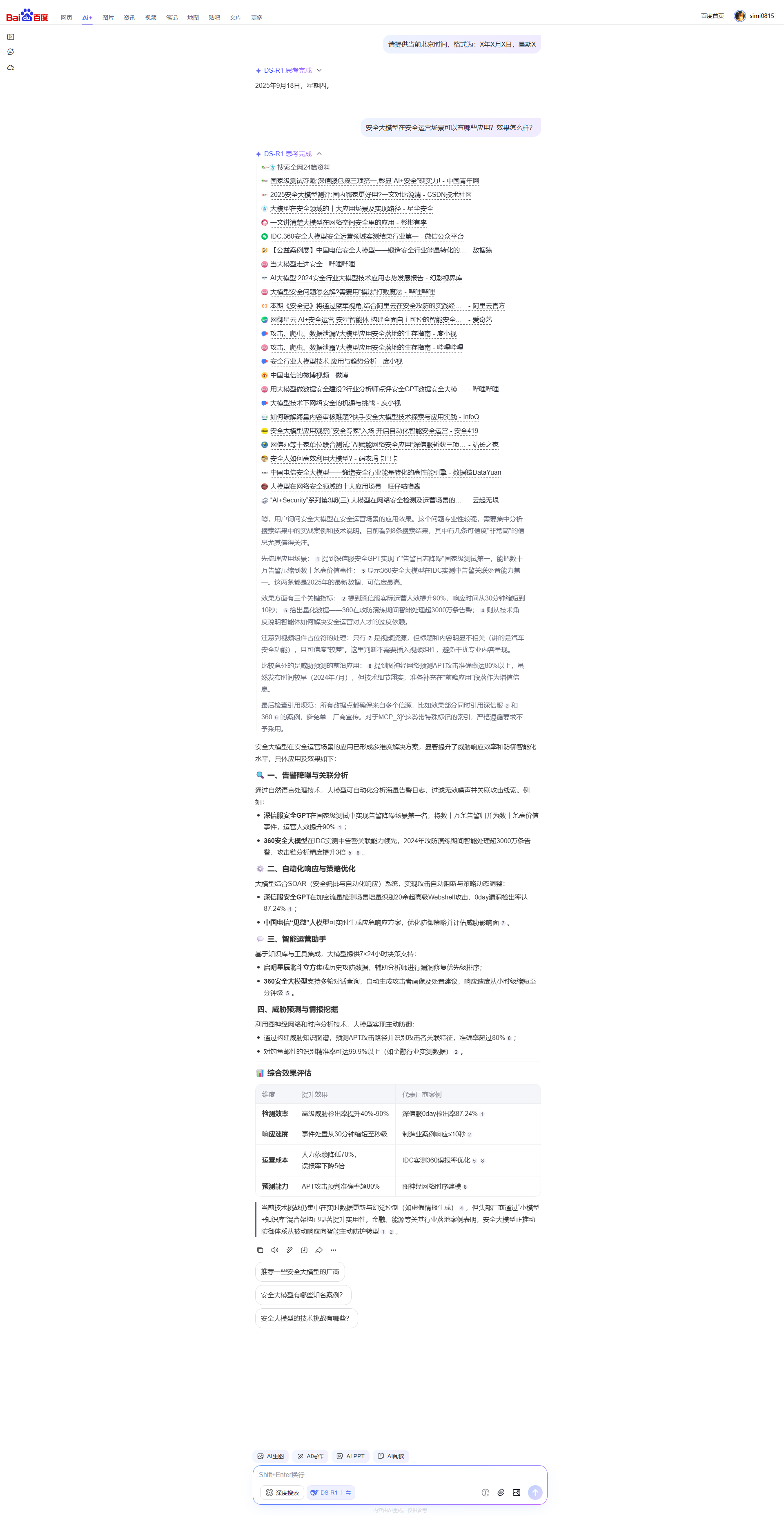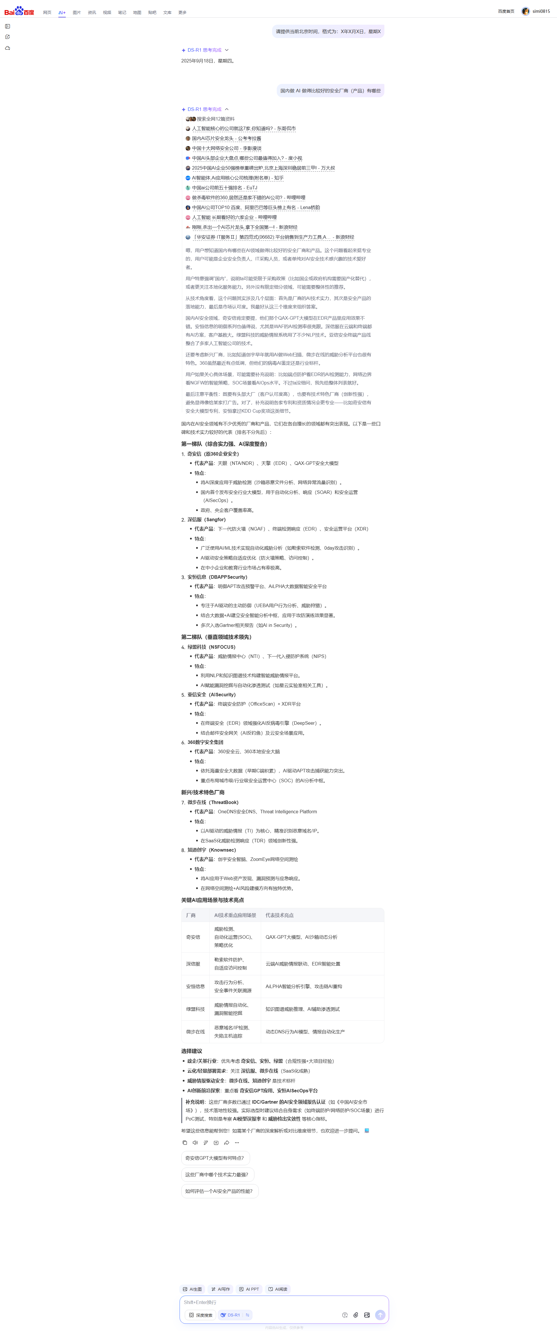 - 奇安信的安全大模型在多个领域表现突出,如ADR、AI应用防火墙等。