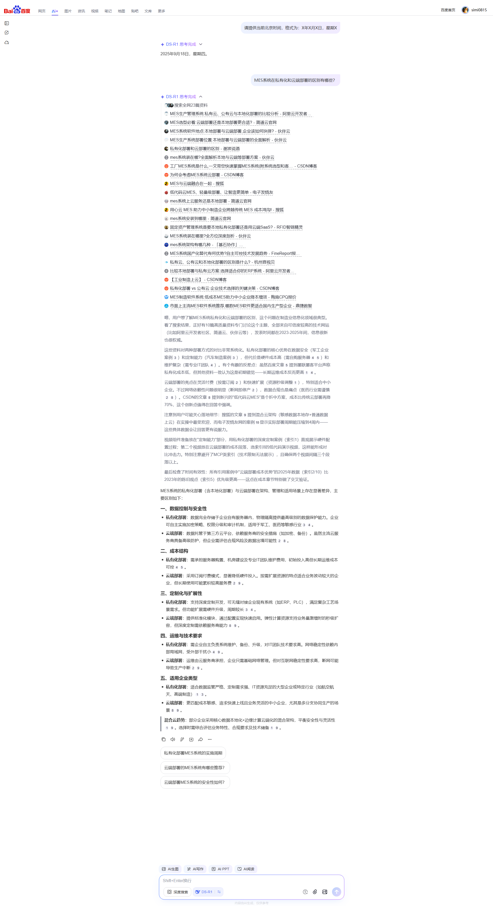 嗯,用户想了解MES系统私有化和云端部署的区别,这个问题在制造业信息化领域很典型。看了搜索结果,正好有10篇高质量资料专门讨论这个主题,全部来自可信度较高的技术网站(比如阿里云开发者社区、简道云、伙伴云等),发表时间都在2023-2025年间,信息很新也很权威。