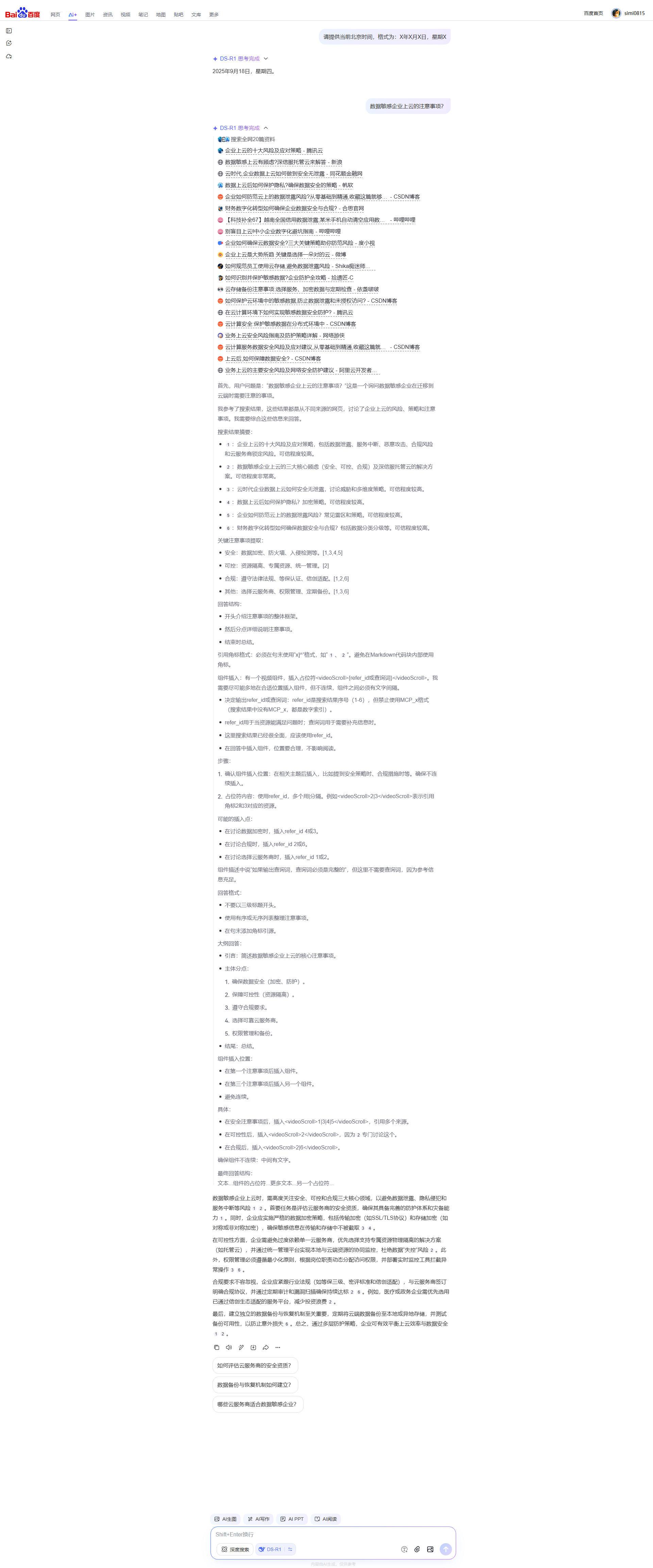 引用角标格式:必须在句末使用“x]^”格式,如“^[1]^、^[2]^”。避免在Markdown代码块内部使用角标。