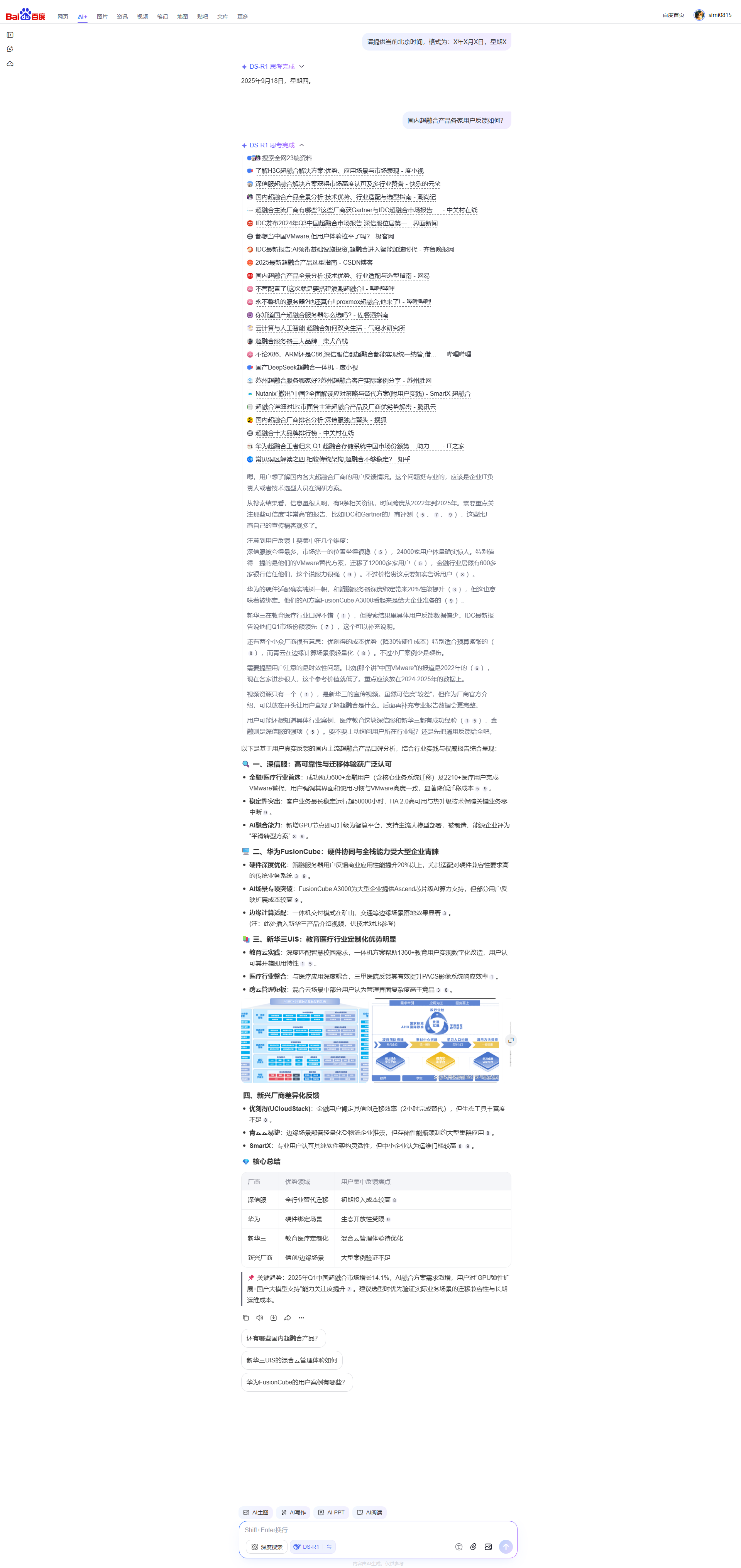 https://baijiahao.ba... | IDC 2025 Q1 超融合中国市场报告,华为、SmartX、深信服等厂商入选 |