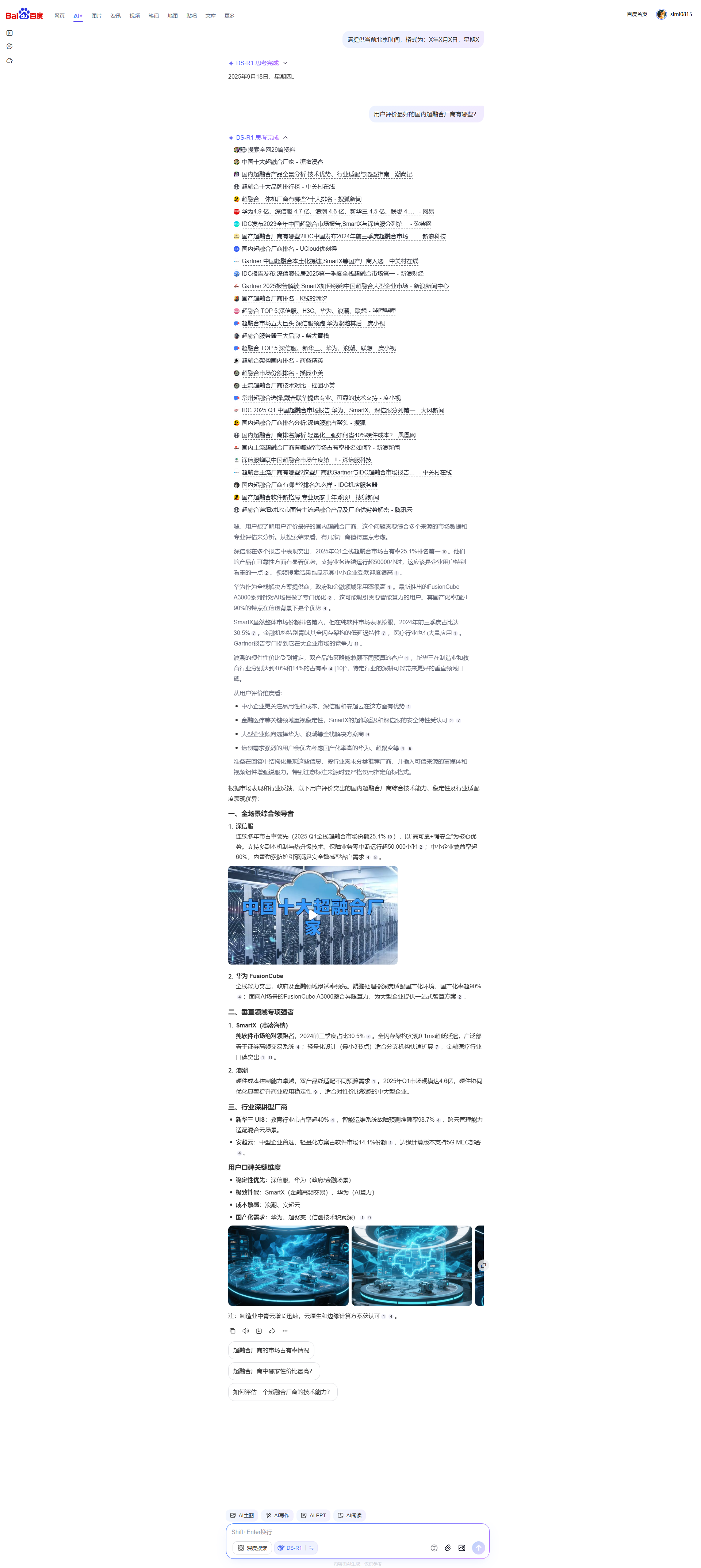 - ^[2]^:标题为“2025年第一季度:深信服领跑全栈超融合市场”,内容显示深信服市场份额领先,可信程度为“非常高”,时间2025-07-15。