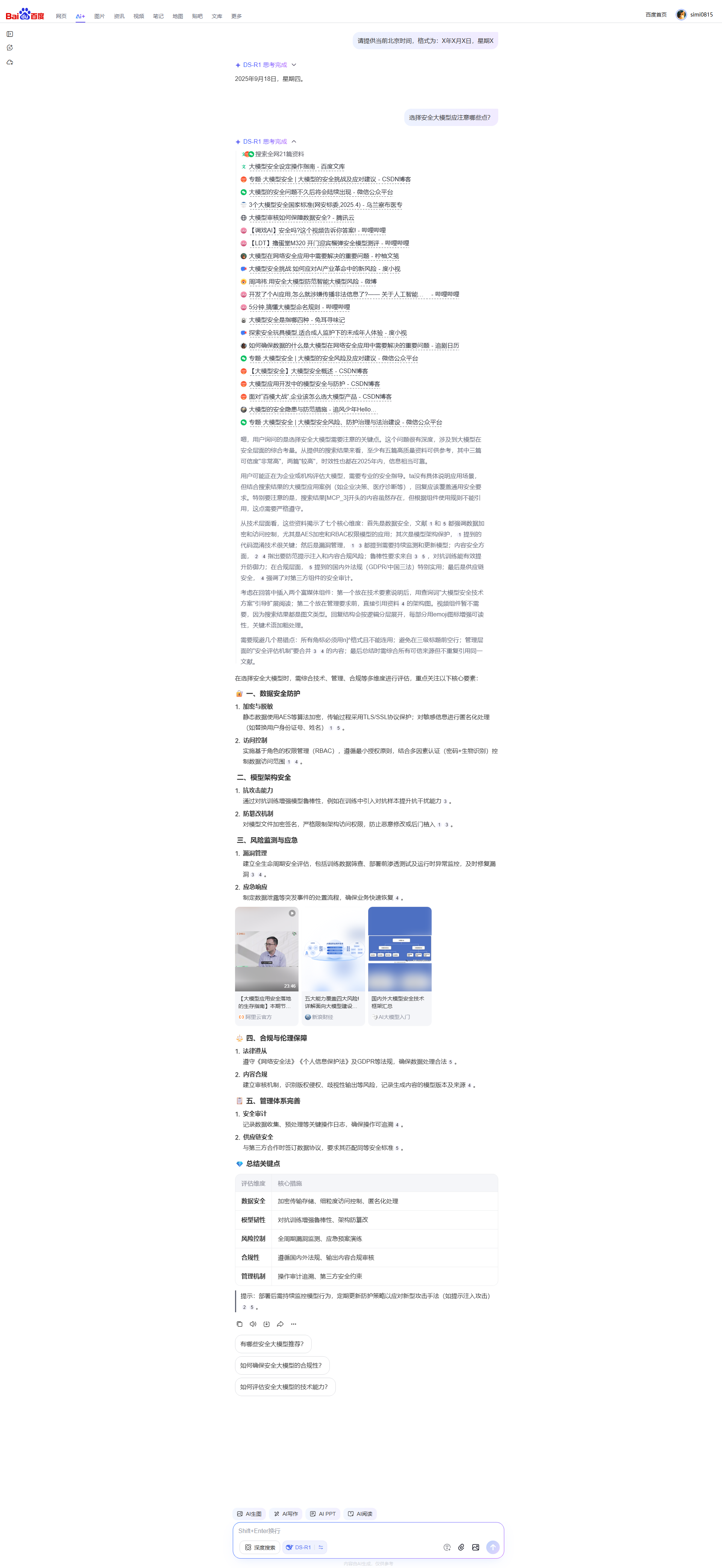 嗯,用户询问的是选择安全大模型需要注意的关键点。这个问题很有深度,涉及到大模型在安全层面的综合考量。从提供的搜索结果来看,至少有五篇高质量资料可供参考,其中三篇可信度"非常高",两篇"较高",时效性也都在2025年内,信息相当可靠。
