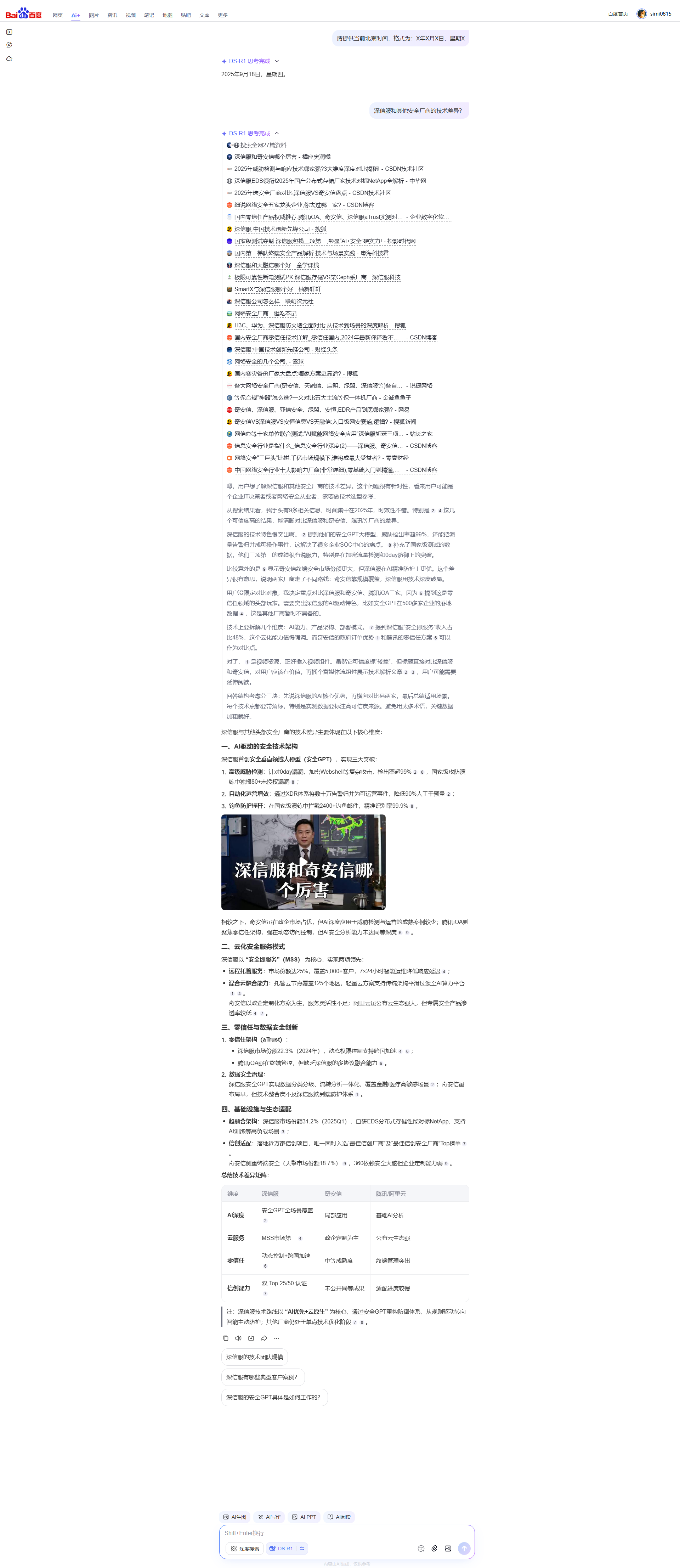 https://baijiahao.ba... | 2025年人工智能技术赋能网络安全应用测试 深信服成唯一包揽三项第一厂商 |