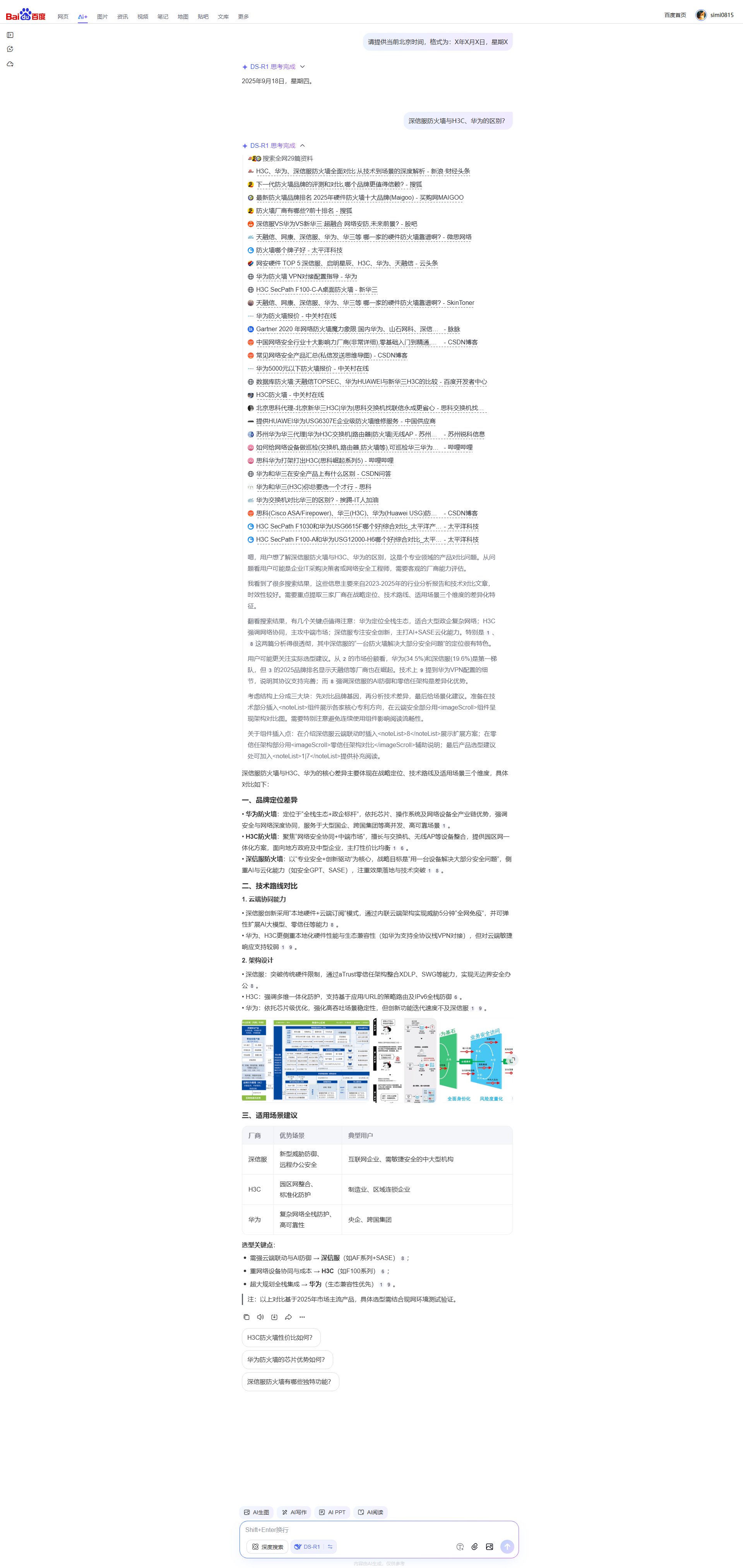 • 华为:依托芯片级优化,强化高吞吐场景稳定性,但创新功能迭代速度不及深信服^^1^^9^^。